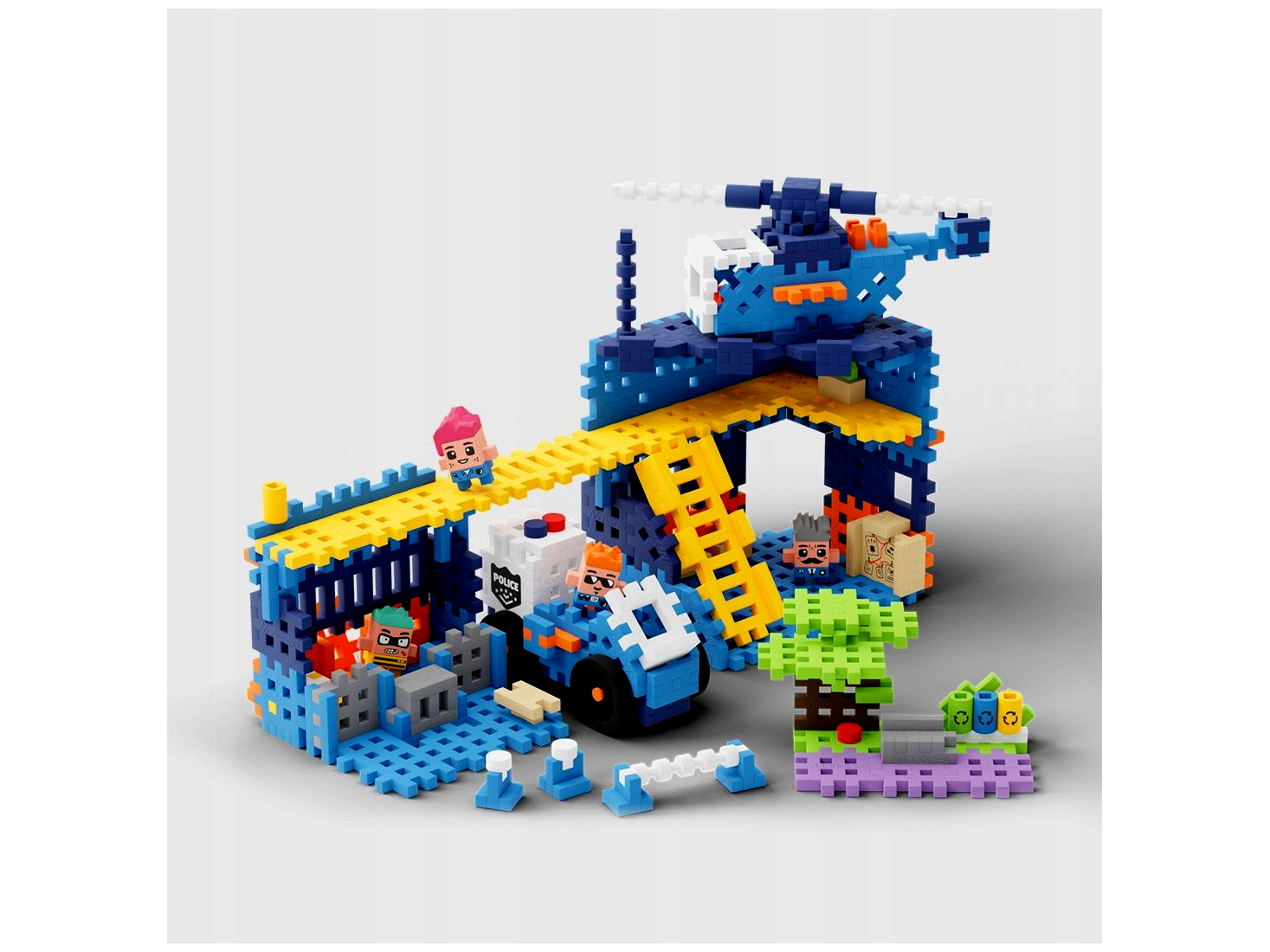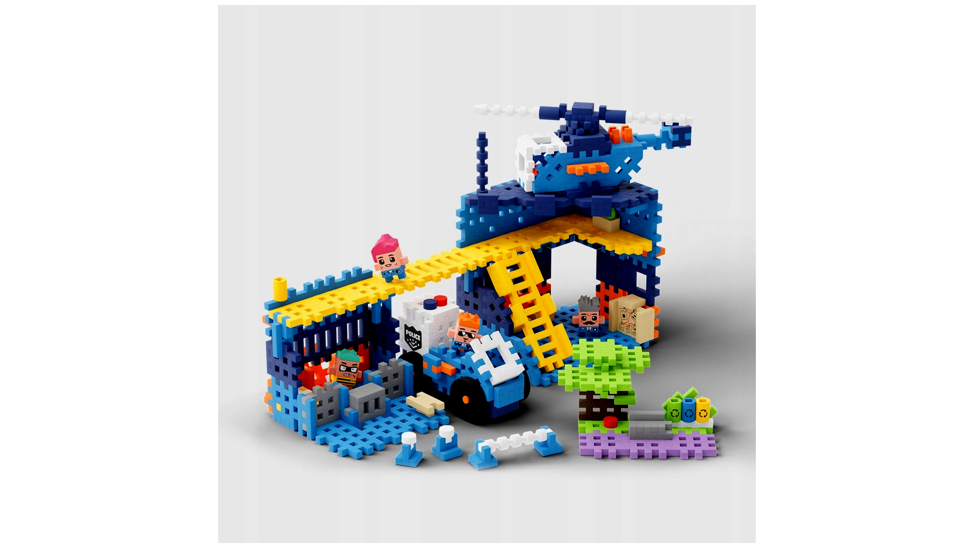Építsd meg a rendőrőrsöt és biztosítsd a város lakóinak biztonságát! Járőrözz az utcákon rendőrautóval, vagy indulj helikopterrel az égbe, ha nagyobb fenyegetés érkezik. A játék szett 280 elemből és négy egyedi figurából áll, amely lehetővé teszi, hogy különböző játékscenáriókat hozz létre.