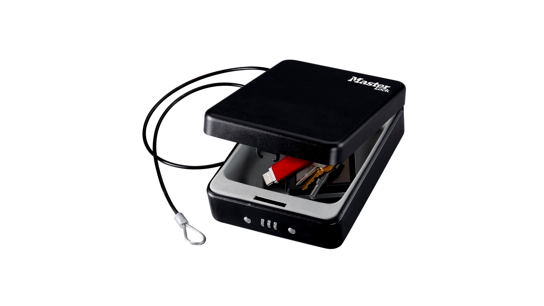 A Master Lock P005CEURBLKHRO egy kis méretű, hordozható kombinációs záras koffer széf, amely kiváló megoldást nyújt az útközbeni biztonságra. Ideális választás autókban, furgonokban, egyetemen, kempingezéskor, hajón vagy akár egy strandolás során, hogy megvédje mobiltelefonját, pénztárcáját, MP3 lejátszóját és más kisebb értéktárgyait.