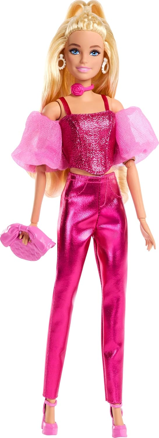 Mattel Barbie Deluxe Style - Szőke hajú Barbie baba metál pink ruhában