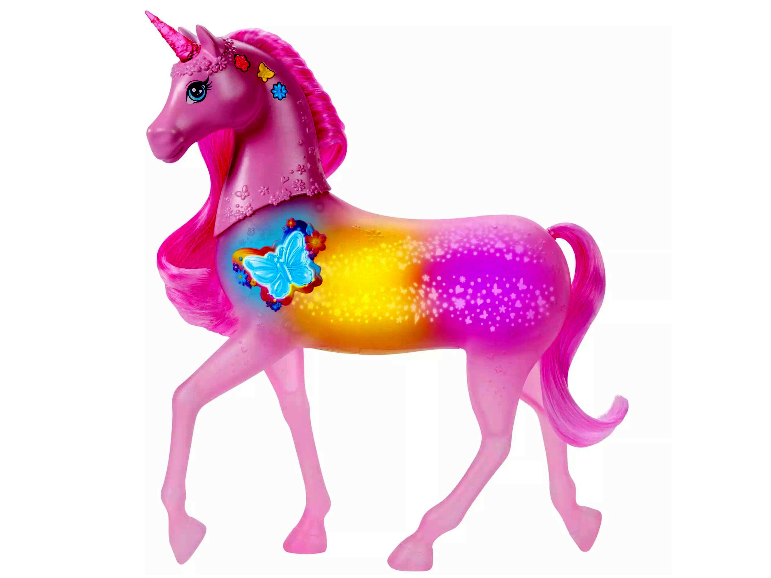 A Barbie Dreamtopia Pillangóvarázs Unikornissal a játék tényleg olyan, mintha a gyerekek egy álomba csöppentek volna. Egy gyönyörűséges álomba, ahol csodálatos történetek várják őket. A fantasztikus külsejű, mesebeli táltos többféle fényjátékkal és hanggal kápráztathatja el a gyerekeket játék közben.