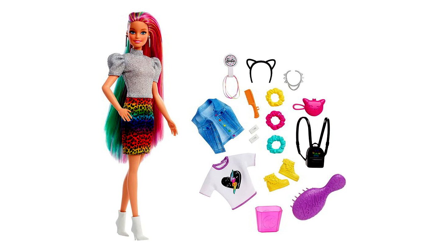 Hosszú szivárványszínű haját oldalra fésülve és a kiegészítő fésűt hideg vízbe mártva, a szoknyájához illő mintát készíthetnek a gyerekek a trendi felnyírt frizurája alá, hogy fokozhassák a vadóc megjelenést. Annyira menő! A vadóc Barbie 16 darab divatos kiegészítőt kapott: 2 hajtűt, 3 karkötőt, hajpántokat, ecsetet, szívecske mintás pólót, farmer mellényt, macska fület, macskás pénztárcát, nyakláncot, egy mancs mintás hátizsákot, egy extra cipőt és egy szivacsos fésűt a színváltoztatáshoz, amihez egy víztartály is jár. A gyerekek imádják a változatos játéklehetőségeket, a vadóc stílus pedig egy újabb élmény.