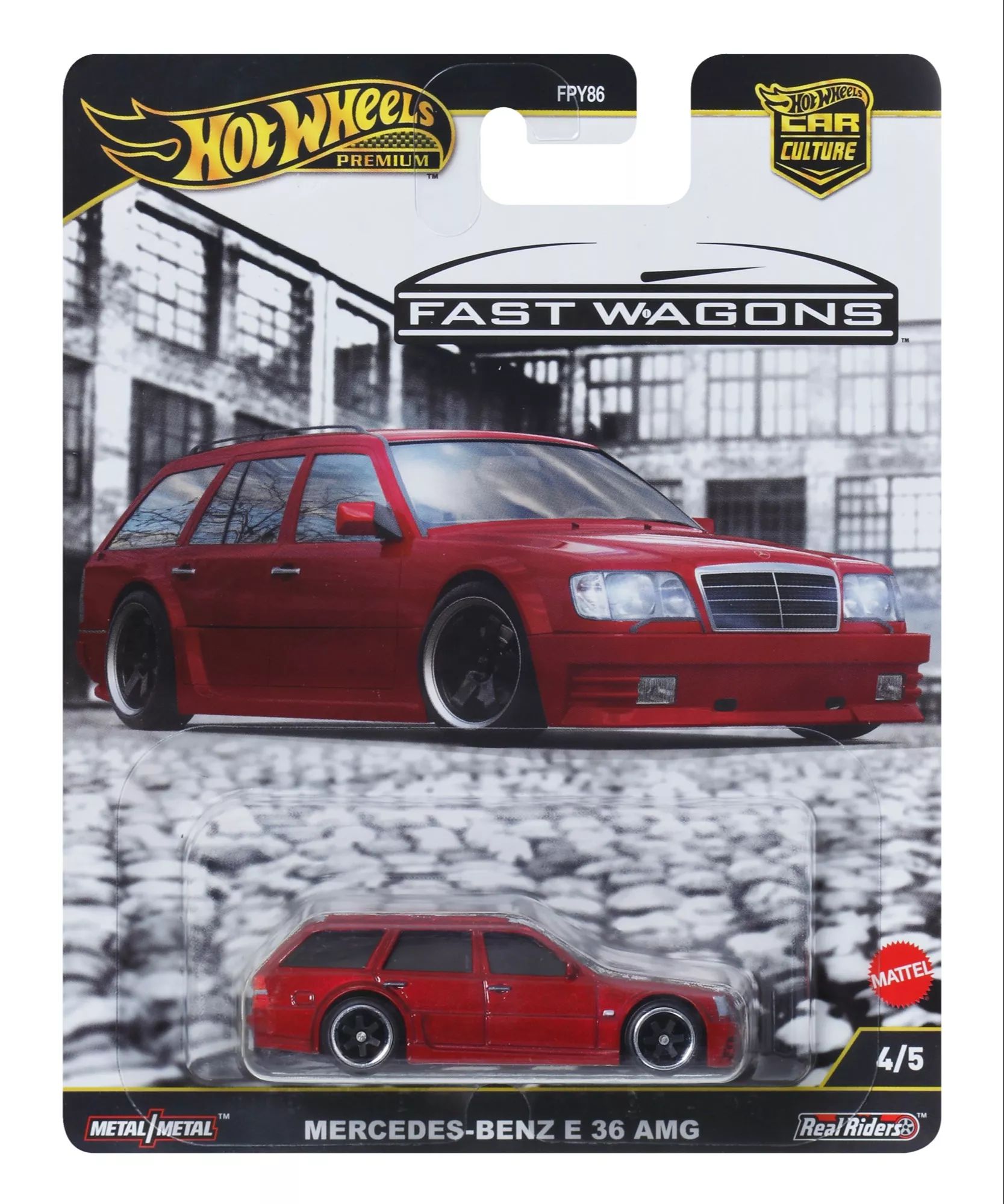 A Mattel Hot Wheels Mercedes AMG E-36 Autókultúra kisautó minden gyűjtő álma! Ez a remek 1:64 méretarányú modell részletgazdag kidolgozással és valósághű külsővel rendelkezik. A prémium Hot Wheels kollekció kiemelt darabja, mely a legapróbb részletekig hűen tükrözi az eredeti jármű eleganciáját és stílusát.