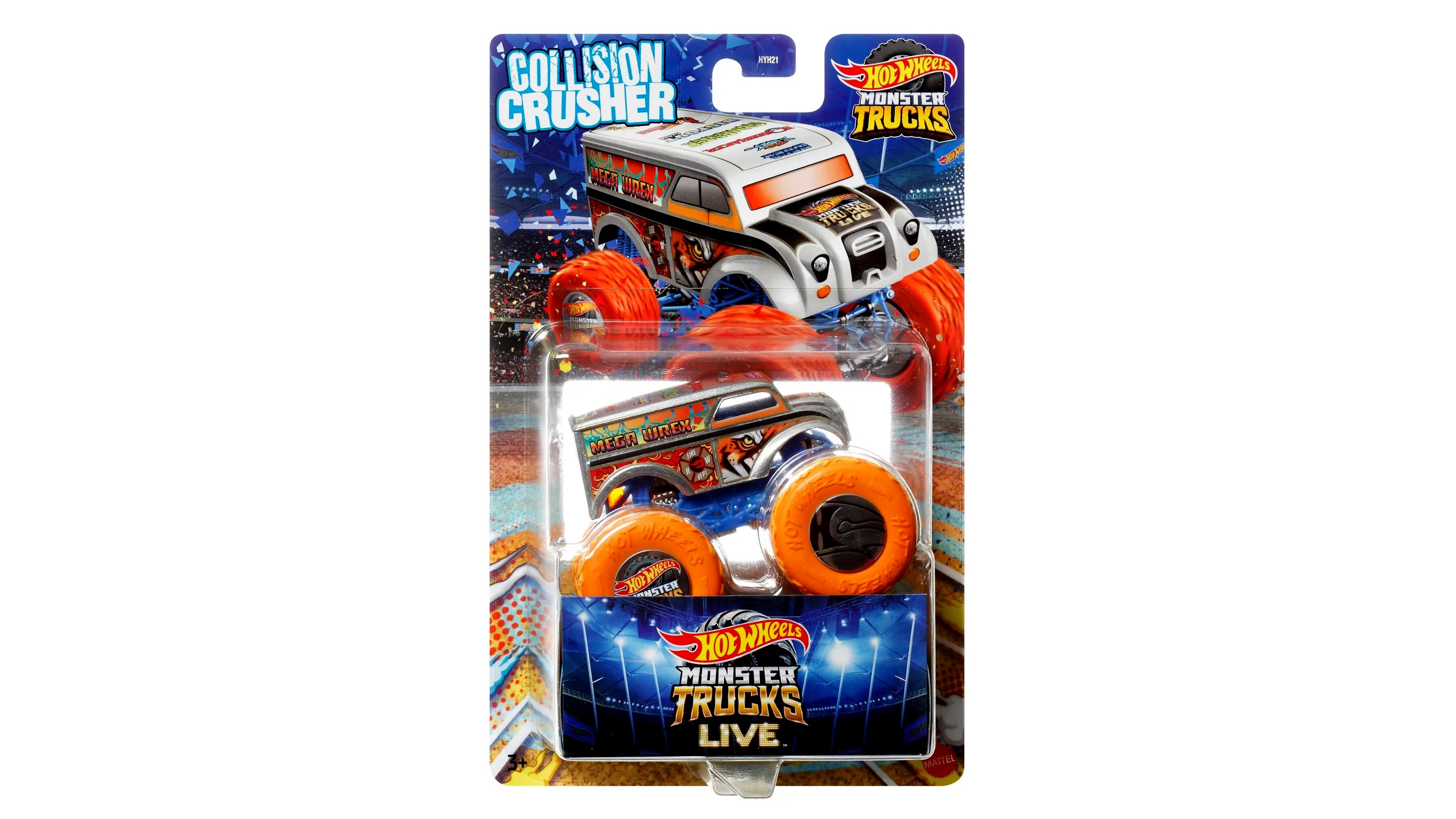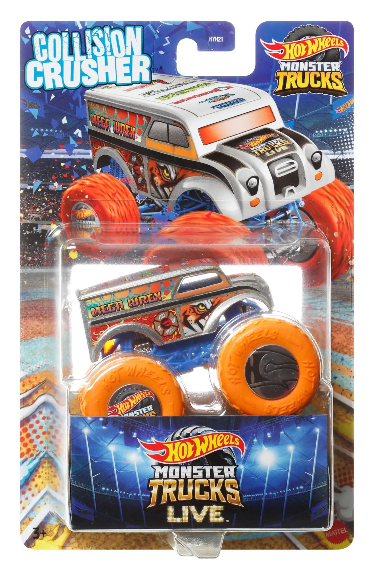 A Hot Wheels Monster Trucks kisautóknak nincs párja, ha versenyről, trükkökről és főleg, ha zúzásról van szó. Óriási kerekeik nagy előnyt adnak nekik az autó-autó elleni küzdelmekben. A Hot Wheels Monster Trucks Live kisautó egy egyedi karakter és egy igazi zúzógép, lételeme az ütközés, amit szeret bemutatni mindenkinek. Jaj annak, aki versenyre kel vele.