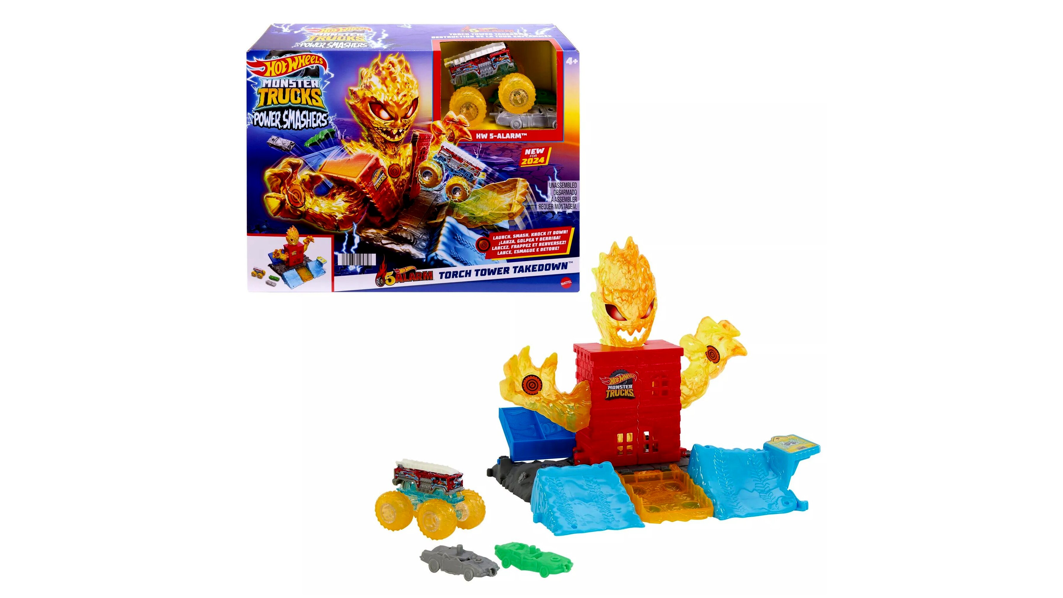Akciók, ütközések, stílus és fantasztikus kalandok várnak rád a Hot Wheels Monster Trucks Power Smasher Tűzszörny pályaszettel! Ezzel az izgalmas készlettel a gyerekek most mindegyiket átélhetik. Az 1:64 méretű 5-Alarm járgány bátor küzdelmet vív a tűzszörnyeteggel, és ha sikeresen eltalálja a megfelelő pontokat, ledöntheti a bestia birodalmát. A sikeres küldetés egy szórakoztató lezárást is tartalmaz, ami emlékezetessé teszi minden játékidőt.