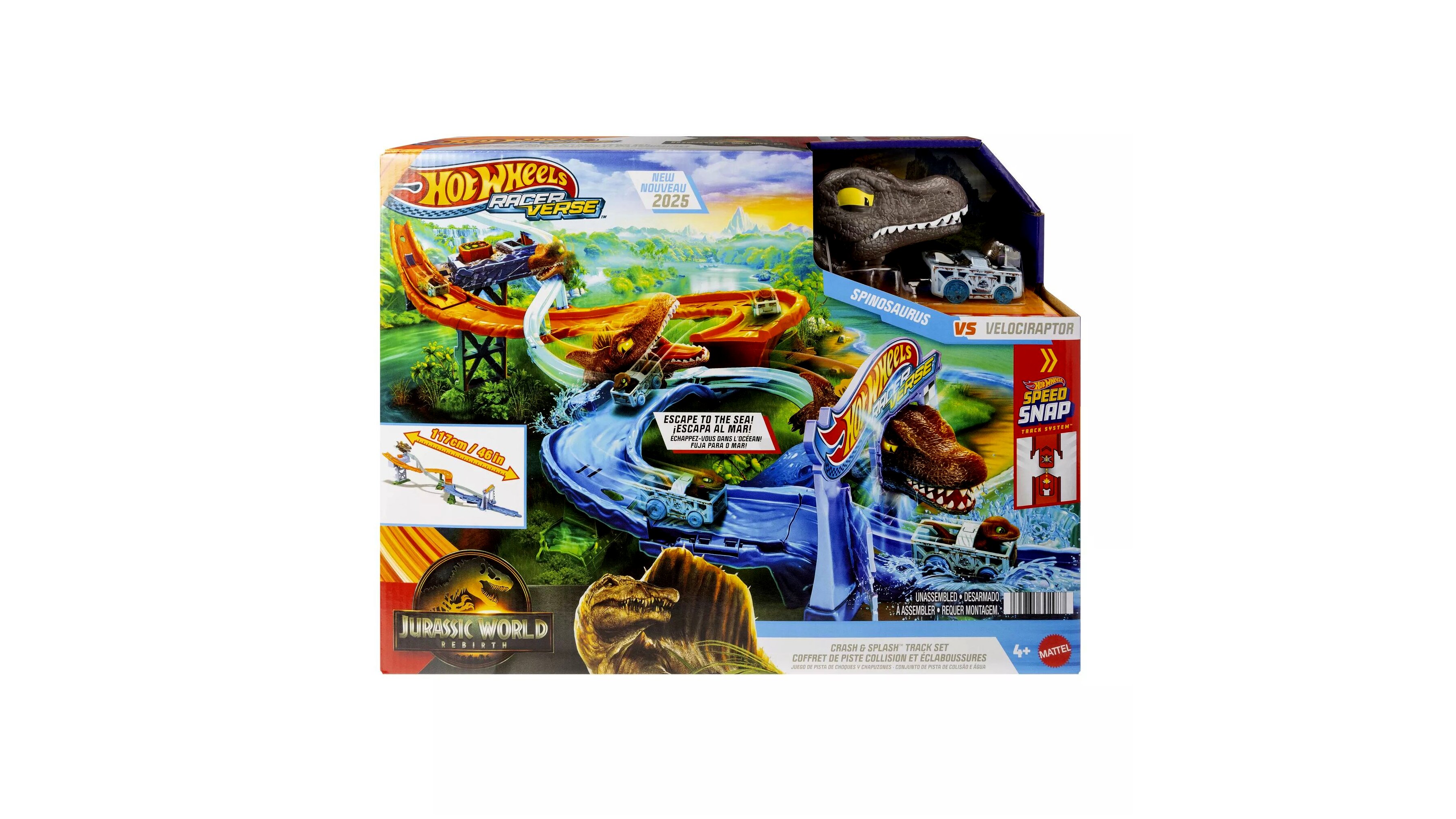 Mi történik, ha a Hot Wheels kisautói találkoznak a kedvenc filmeiddel? Az eredmény egy hihetetlenül egyedi és szórakoztató verseny készlet! A Mattel Hot Wheels Racer: Jurassic World pályaszettben egy félelmetes dinó és egy kisautó méri össze tudását és sebességét a dínók uralta világban.