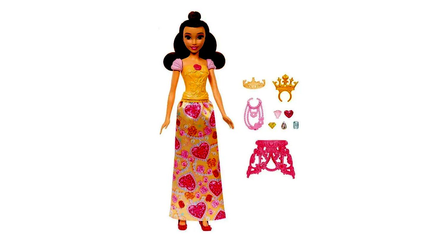 • Szív alakú meglepetésdoboz: dekoratív, masszív kialakítás, amely egyszerre játékelem és praktikus tároló. • Belle baba a Disney meséből: részletgazdag kidolgozással, a gyerekek kedvenc hercegnőjeként. • Mese által ihletett kiegészítők: ruhák és apró kiegészítők, amelyekkel mindig új megjelenés alkotható. • Öltöztethető baba: a kiegészítők cserélgetésével változatos szerepjátékok, jelenetek játszhatók el. • Kreatív, szerepjátékos élmény: bátorítja a történetmesélést, a fantáziadús játékot és az érzelmek megjelenítését. • Praktikus tárolás: a szív alakú dobozban minden kiegészítő könnyen elfér, így a készlet egyben, rendezve tartható. • Biztonságos játék kisgyerekeknek: strapabíró anyagok, lekerekített formák, gondosan tervezett részletek. • 3 éves kortól ajánlott: életkornak megfelelő méret, kezelhetőség és tartalom. • Változatos megjelenés: a színek és díszítések eltérhetnek, így minden darab kicsit egyedi. • Mattel minőség: hivatalos Disney termék, megbízható, nagy múltú gyártótól.