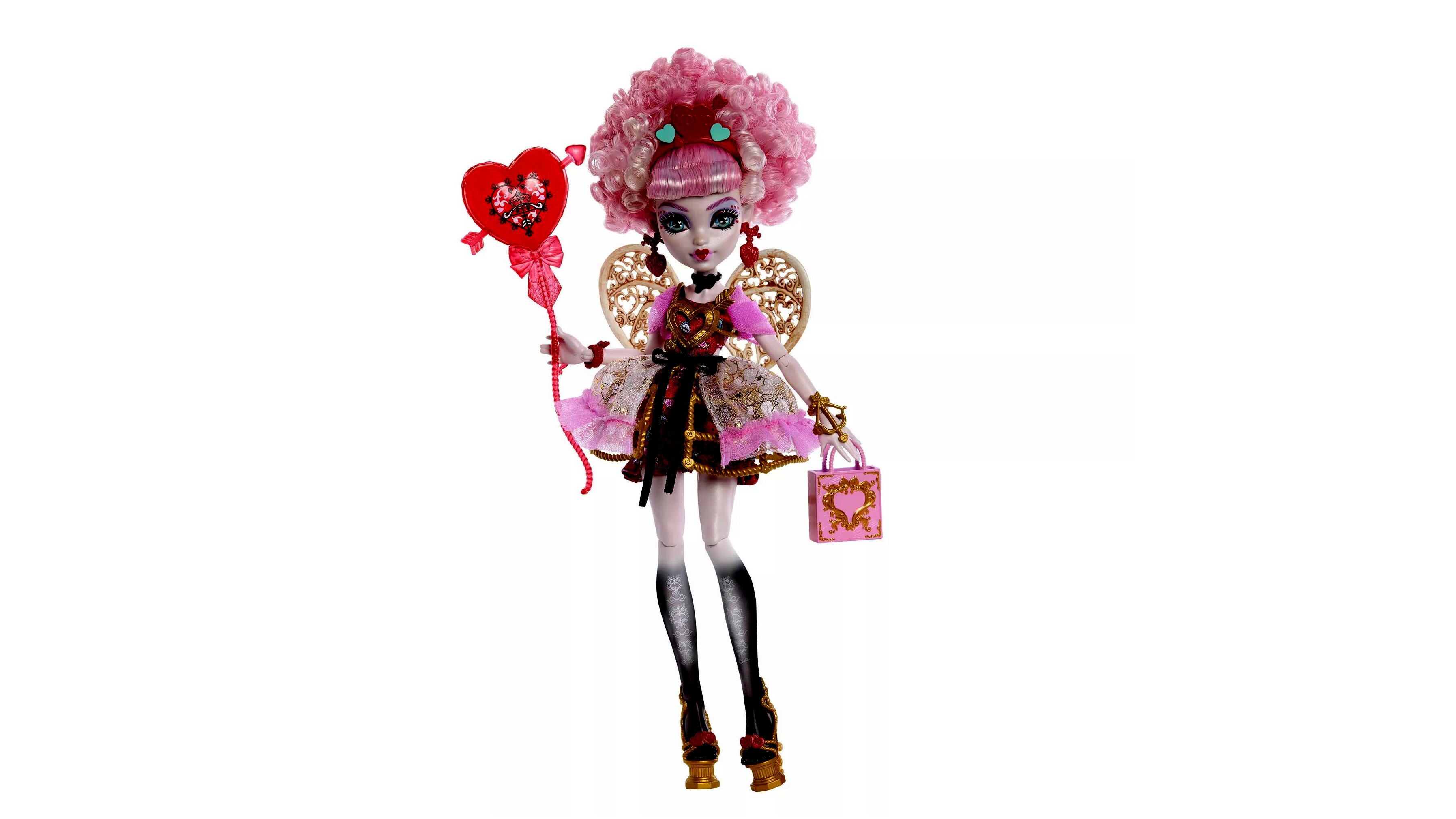 A Monster High világában egy születésnapi parti csak rém menő lehet. A Misztikus Mulatság sorozatban szereplő babák hátborzongatóan csinos öltözékben érkeznek megünnepelni Draculaura ezerhatszázadik születésnapját. Cupid baba a mulattságon szörnyen menő, szívecske mintás öltözékben, fejdísszel, táskával, léggömbbel, egy ajándékkal és további szellemes kiegészítőkkel mutatja meg egyedi stílusát. A sorozatban kapható többi babával együtt még fantasztikusabb történetek játszhatók el a Monster High világában.