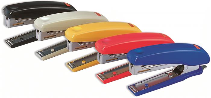 krómacél testű, színes műanyag borítású tűzőgép nagyobb kapocstárral és könnyű töltésű mechanikával beépített kapocskiszedővel a kapocstár oldalán lévő nyíláson látható a gépben lévő kapocs mennyisége tűzési kapacitás: 20 lap