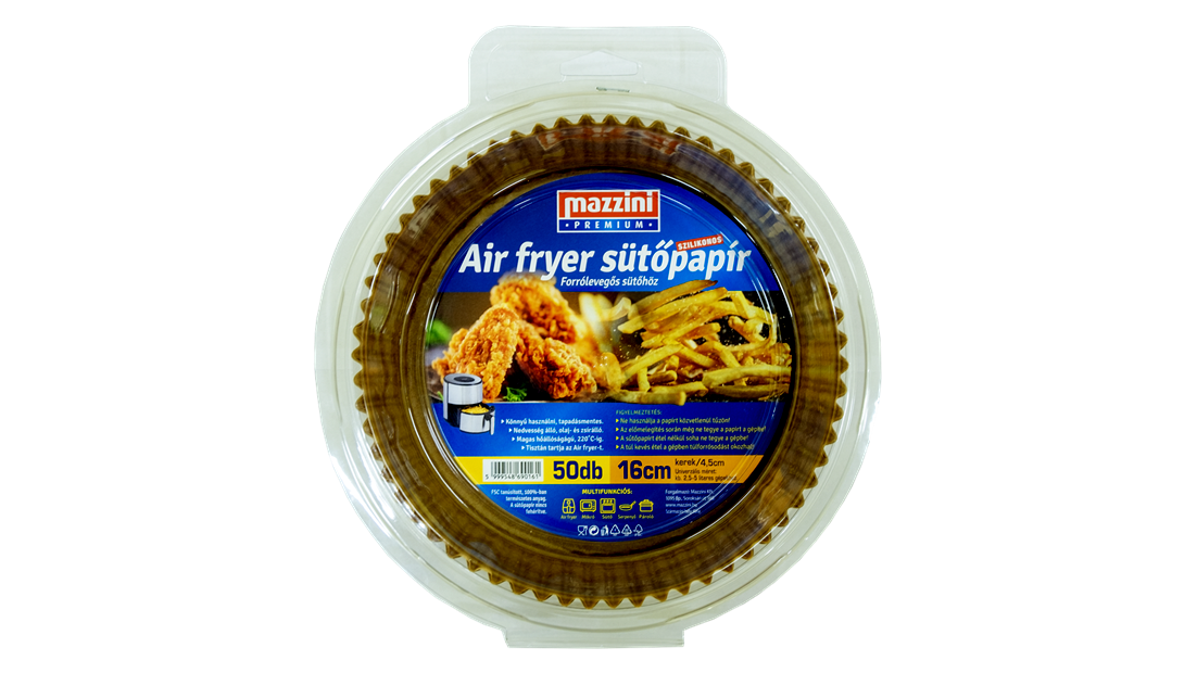 Élvezze a Mazzini 103055 Premium Air Fryer kerek sütőpapír használatának kényelmét, amelyet kifejezetten forrólevegős sütőkhöz fejlesztettek ki!