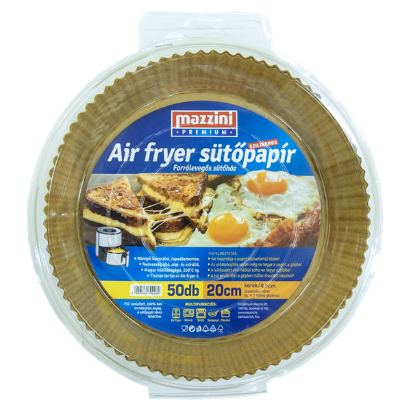 Tegye egyszerűbbé és tisztábbá az ételkészítést a MAZZINI Premium Air Fryer Sütőpapírral! Ez a sütőpapír különleges szilikon bevonatának köszönhetően tapadásmentes, így könnyen eltávolítható és tisztítható. Az 50 darabos csomagban található kerek sütőpapírok mindegyike 20 cm átmérőjű, így tökéletesen illeszkedik a legtöbb forrólevegős sütőhöz és air fryer készülékhez.