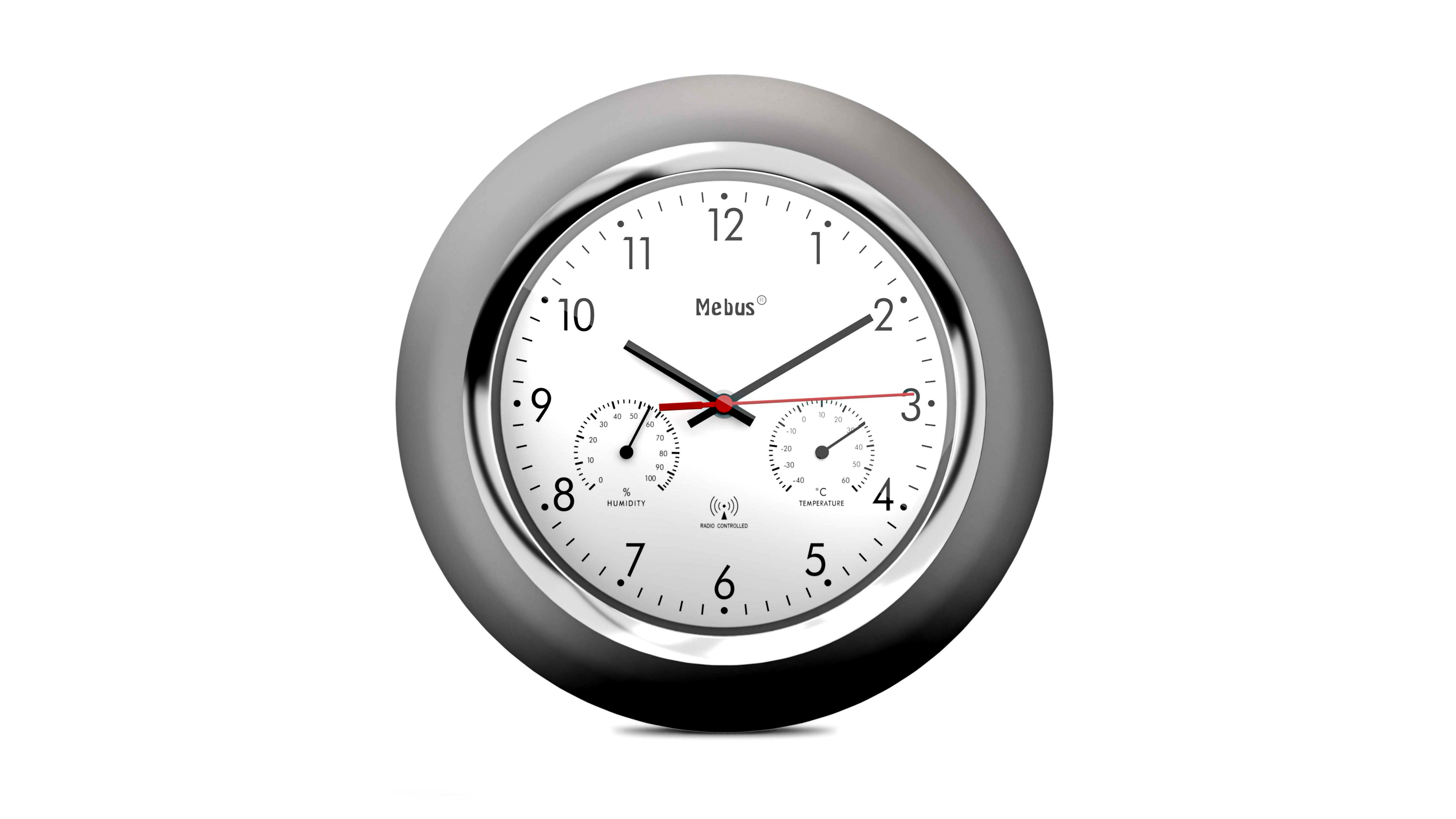 - Modern design: fehér számlap merész fekete számjegyekkel és fekete skálákkal.
