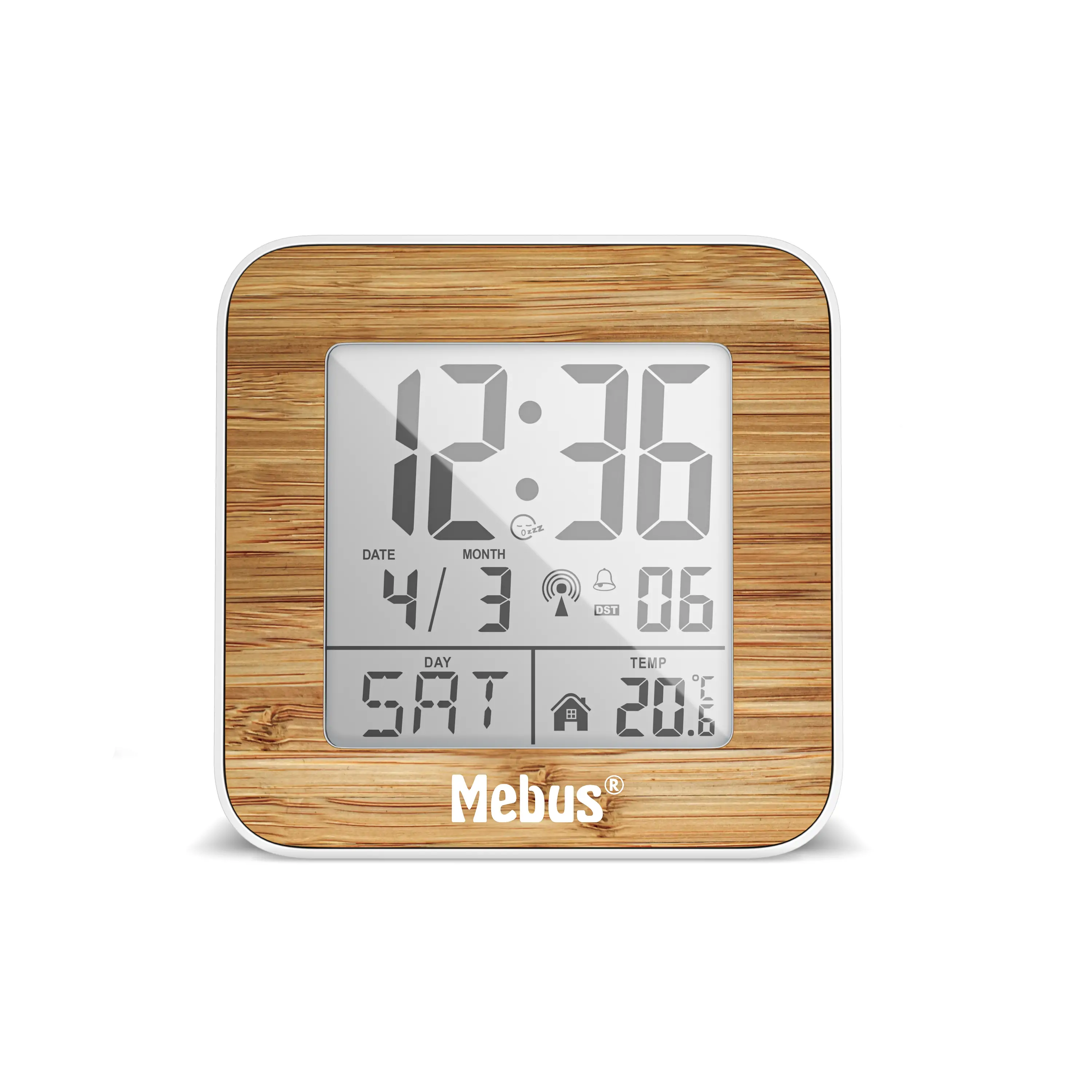 Mebus 27247 Digitális Rádióvezérelt Ébresztőóra Fehér/Fa Hatással
