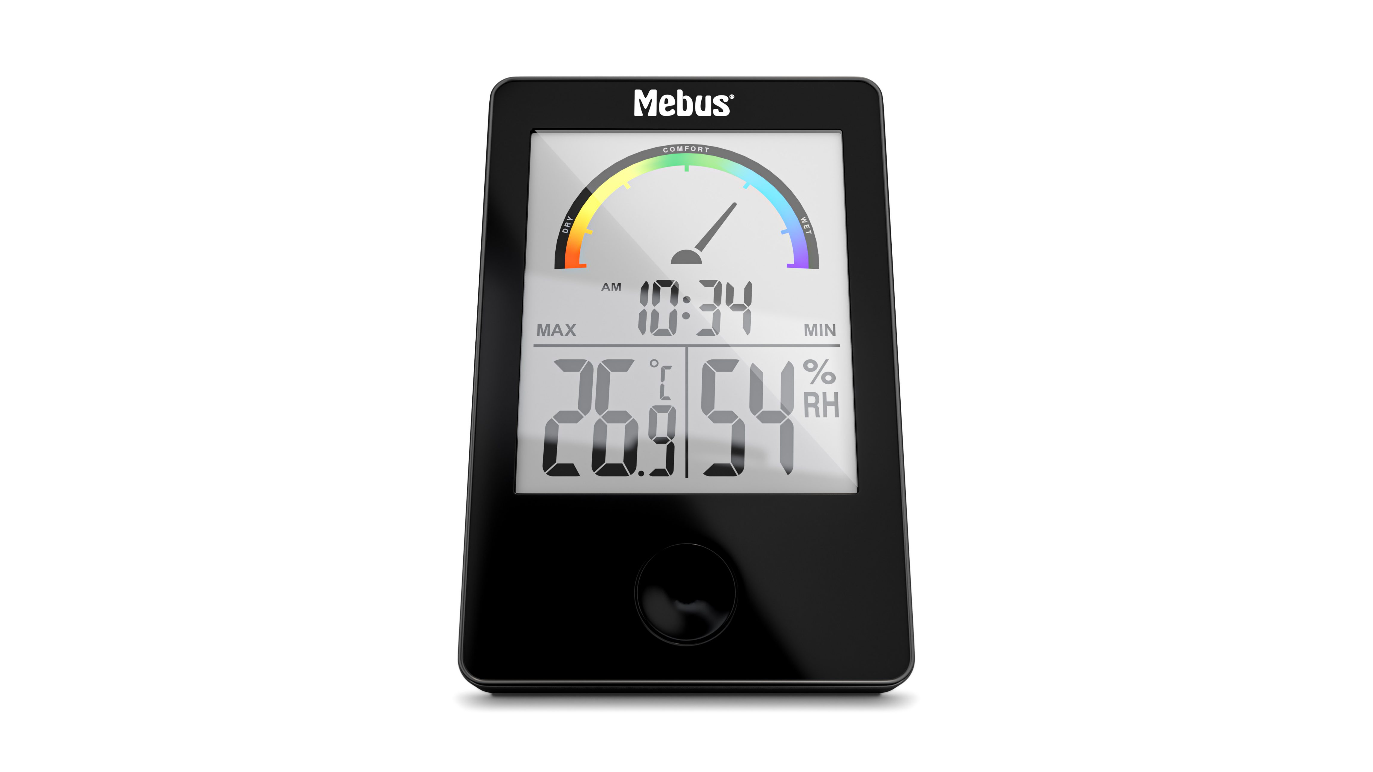 - Színes komfort kijelző: Megmutatja, hogy a helyiség klímája inkább száraz, párás vagy optimális.