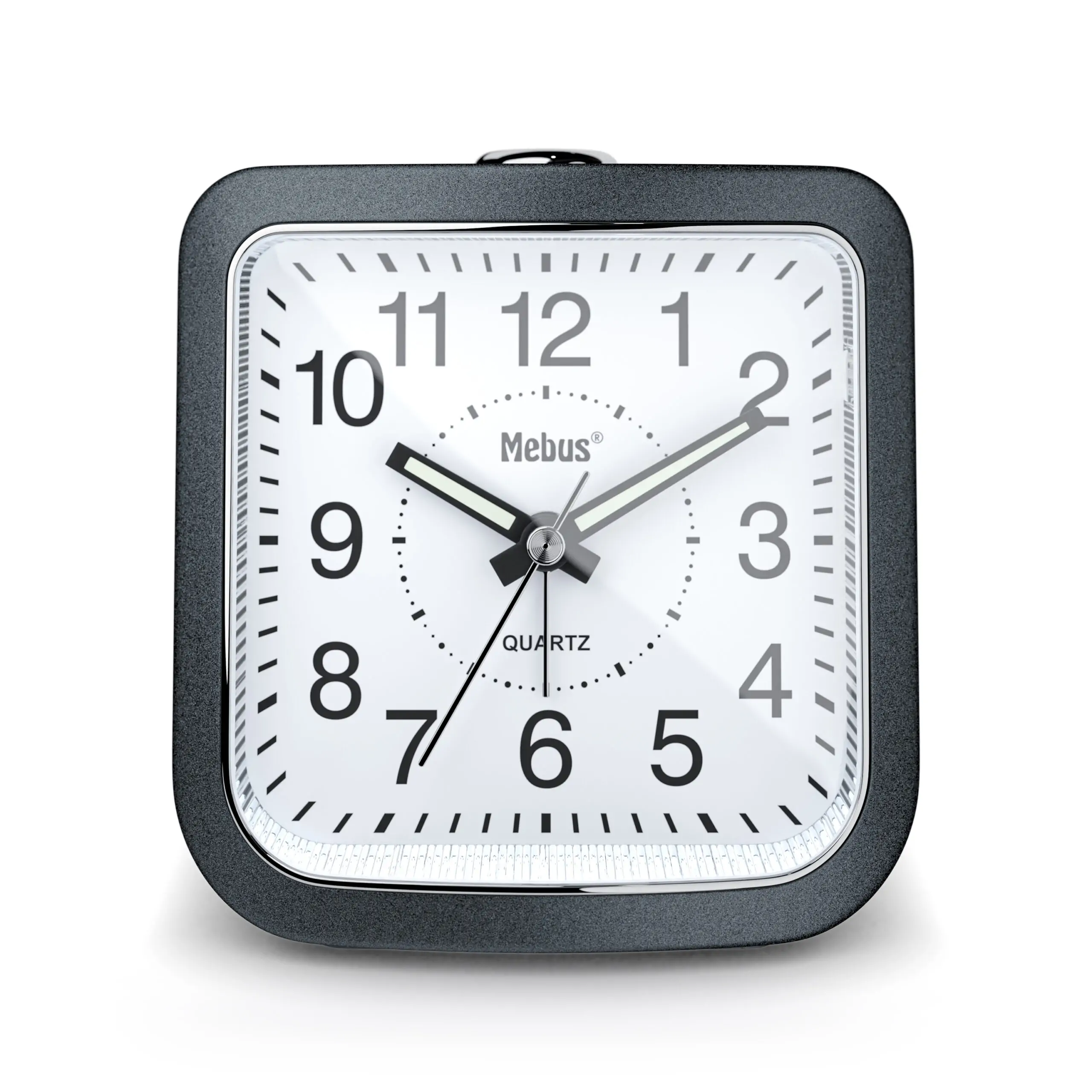 A Mebus 56987 ébresztőóra stílusos és praktikus választás minden hálószobába. Az óra megbízható kvarcmozgással van felszerelve, amely pontos időmérést biztosít anélkül, hogy bosszantó tik-tak hangokat hallatna. Az óra sötétszürke házzal és letisztult fehér számlappal rendelkezik, amelyen sötét számok találhatók, így könnyen olvasható egészen a sötétben is.