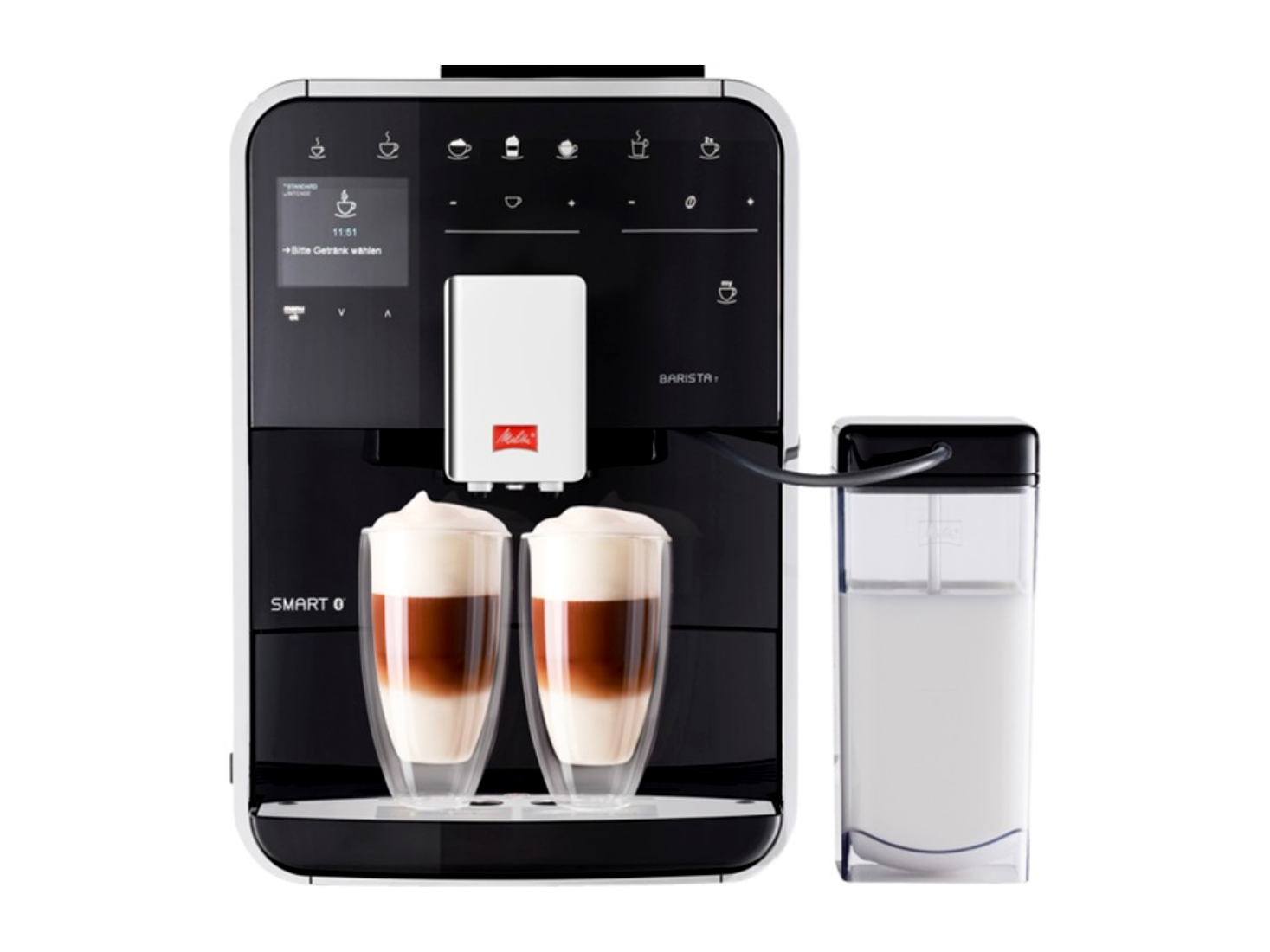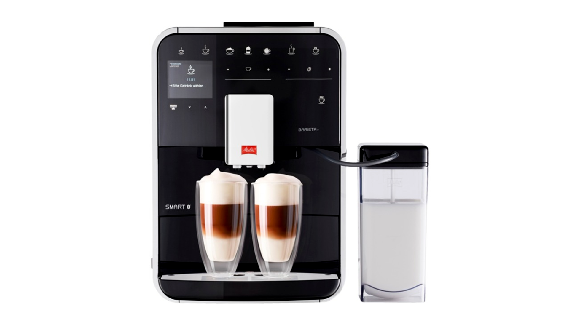 A Melitta Barista T Smart egy teljesen automata kávéfőző. Az innovatív Touch & Slide funkció az érzékelőmezők finom érintésével bármikor egyszerű és kényelmes kezelést tesz lehetővé. A kávé, a tej és a forró víz számára külön fúvókák megkönnyítik kedvenc italai elkészítését a csésze mozgatása nélkül. Ezenkívül a kifolyó magassága 140 mm-ig állítható, így a magas poharak is elférnek alatta. Az innovatív Automatic Bean Select automatikusan kiválasztja kedvenc kávéjának megfelelő babfajtáját a kétkamrás babtartályból vagy tetszés szerint.
