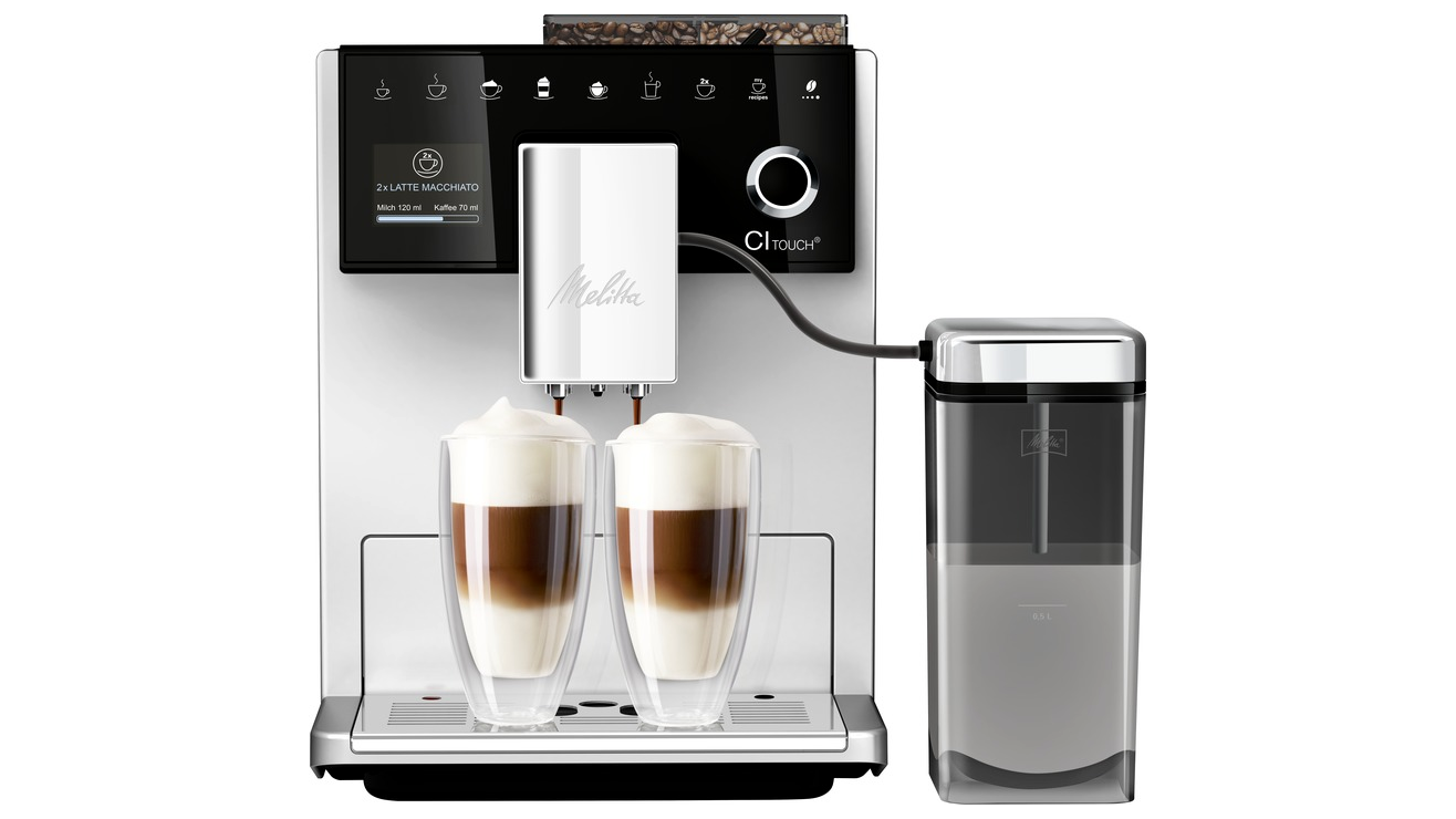 A Melitta CI Touch Plus készüléknagyon egyszerűen és különösebb erőfeszítés nélkül készíti el a különféle kávékülönlegességeket az eredeti recept szerint. A legjobb eszpresszó és további kilenc előre beállított kávérecept mellett akár négy személy egyéni preferenciái is beállíthatók és menthetők. A kétkamrás kézi szemesbab-tartálynak köszönhetően két különböző típusú kávészem közül választhat – a még nagyobb változatosság érdekében.