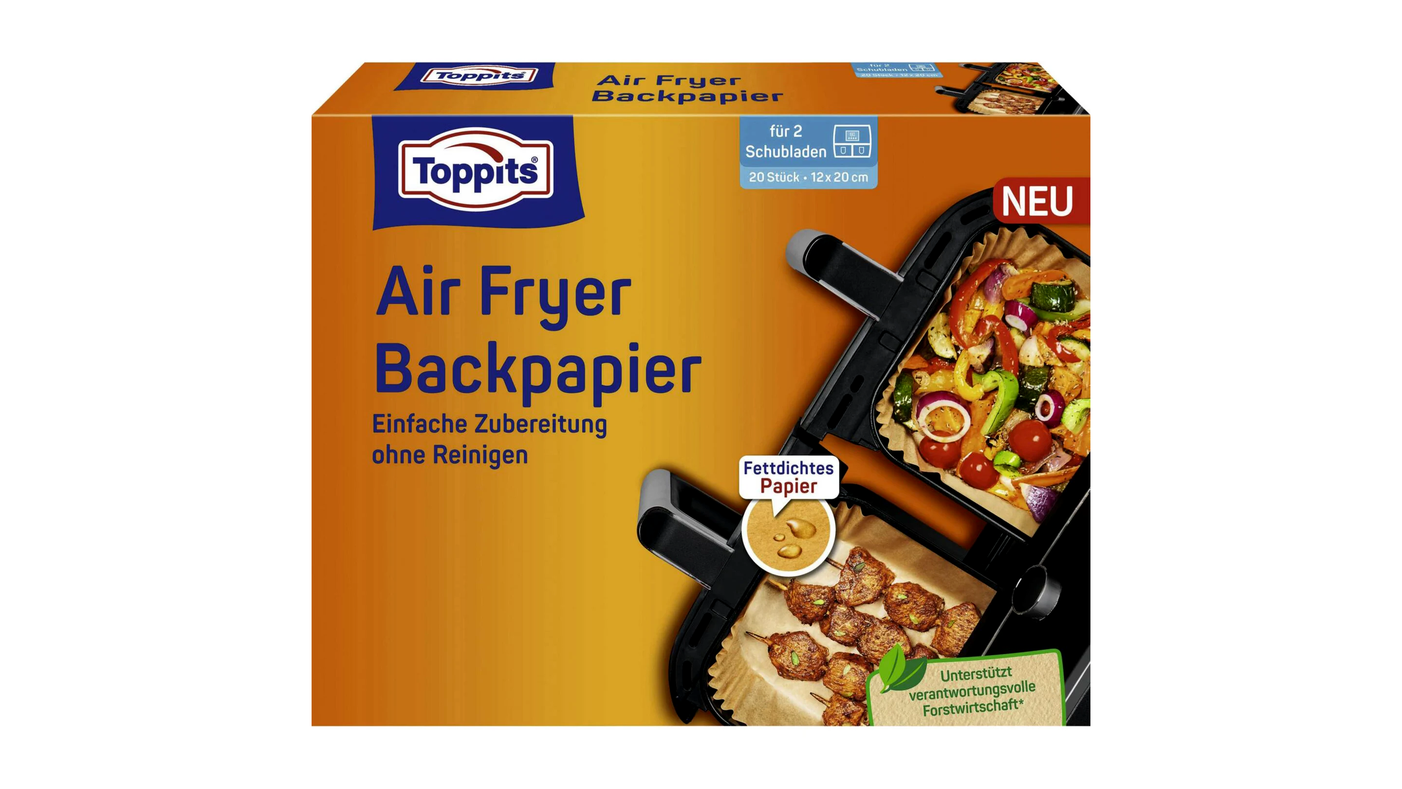 A Toppits speciális sütőpapírja kifejezetten forrólevegős sütőkhöz lett kifejlesztve, hogy a sütés egyszerűbbé, tisztábbá és egészségesebbé váljon. Szoros, kosárkövető formájának köszönhetően optimális légáramlást biztosít, így az ételek egyenletesen sülnek át – kívül ropogósan, belül szaftosan.