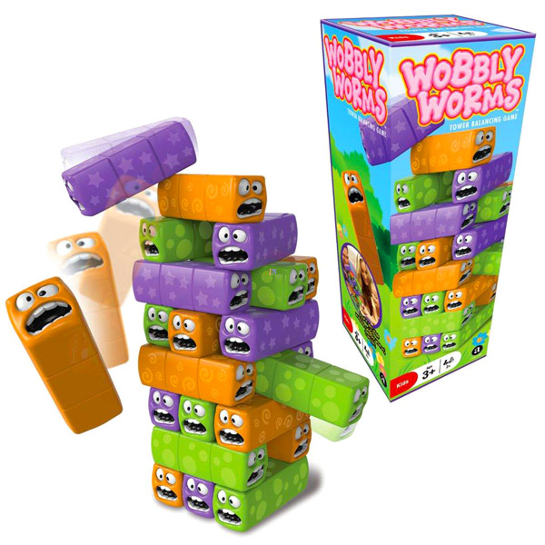 Építsetek színes, kukacos Jenga tornyot a műanyag darabkákból! Ha kész a torony, egyesével húzzátok ki az építőelemeket, majd a kihúzott elemet tegyétek a tetejére! Az a játékos veszít, akinél ledől az ingatag torony!