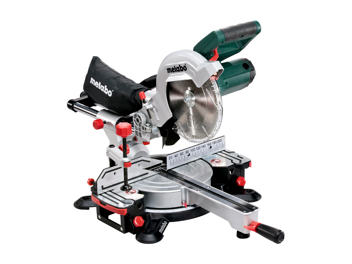 Balra dönthető fűrészfej kiegészítő szögtartománnyal a hátsó vágásokhoz