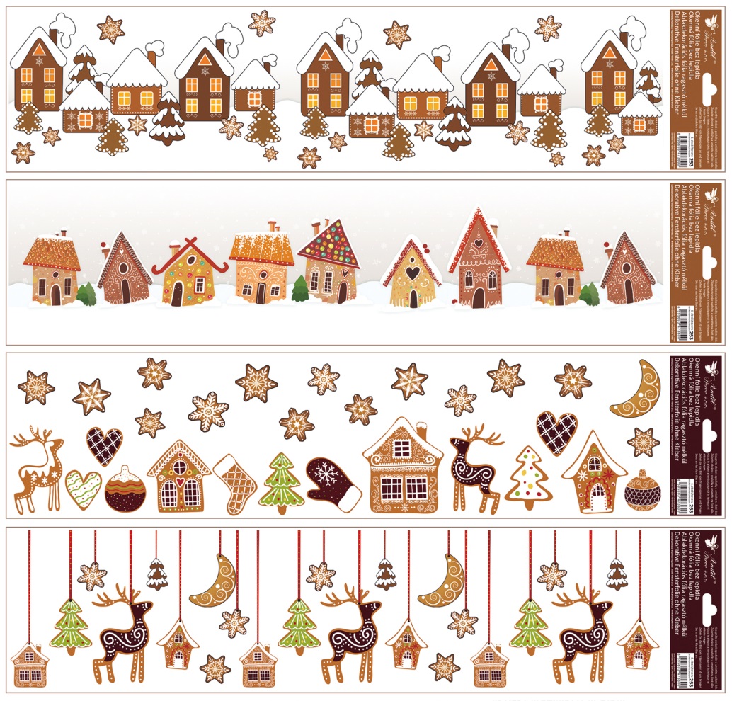 - Öntapadós ablakmatricák különböző mézeskalács házakkal és díszekkel