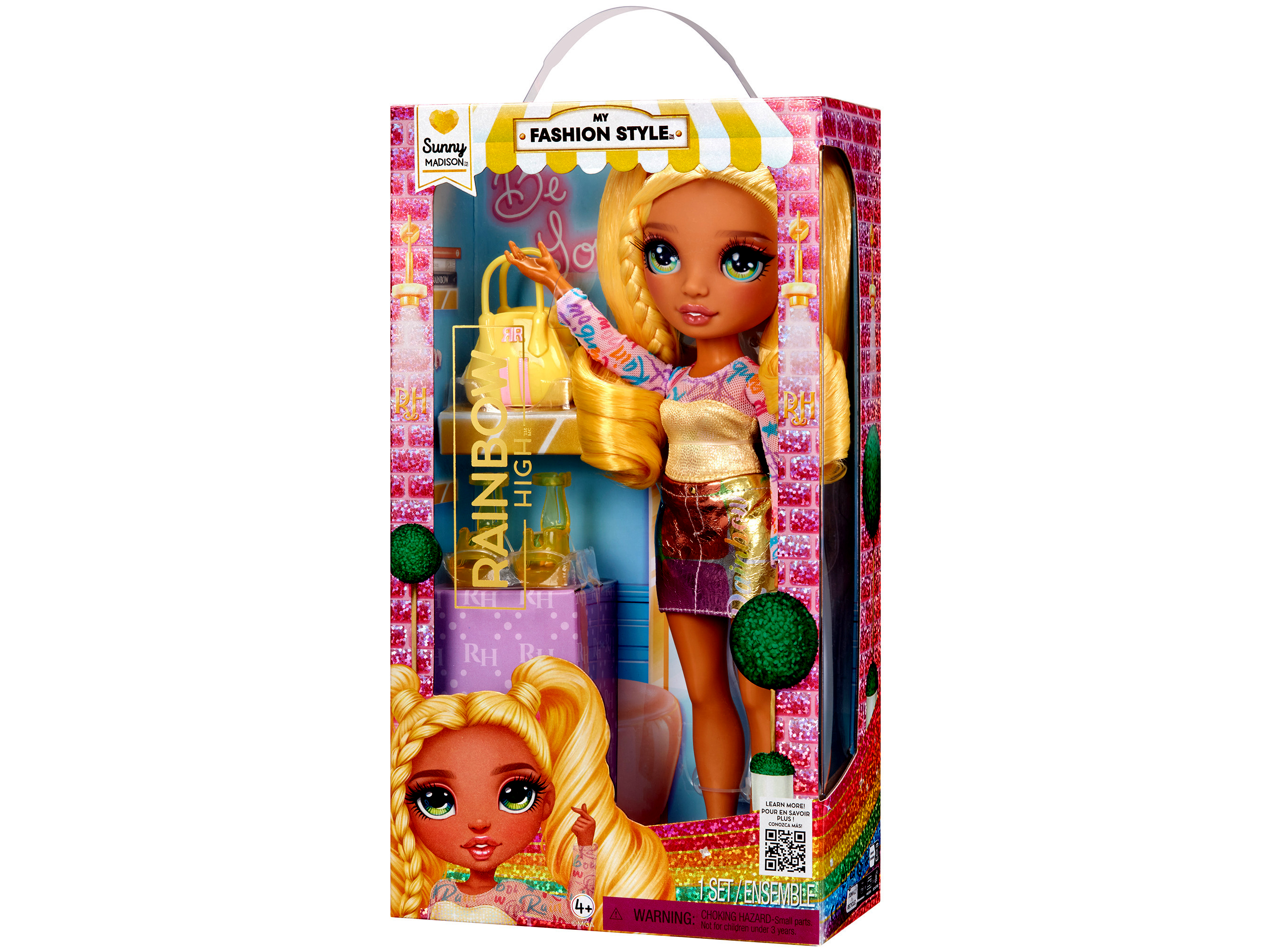 • Ikonikus Rainbow High karakter: Sunny Madison, a sorozat egyik legnépszerűbb szereplője, felismerhető arcvonásokkal és jellegzetes színvilággal.