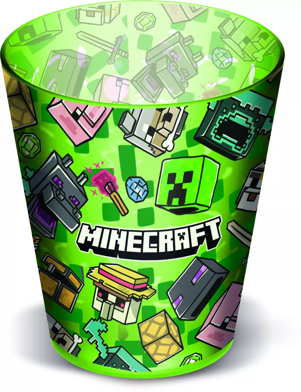 Ez a mintás pohár nem csupán hasznos, hanem stílusos kiegészítő is minden Minecraft-rajongó asztalán. Az erős műanyagból készült pohár hosszú élettartamú és könnyen tisztán tartható, így a mindennapi használat során is praktikus választás.