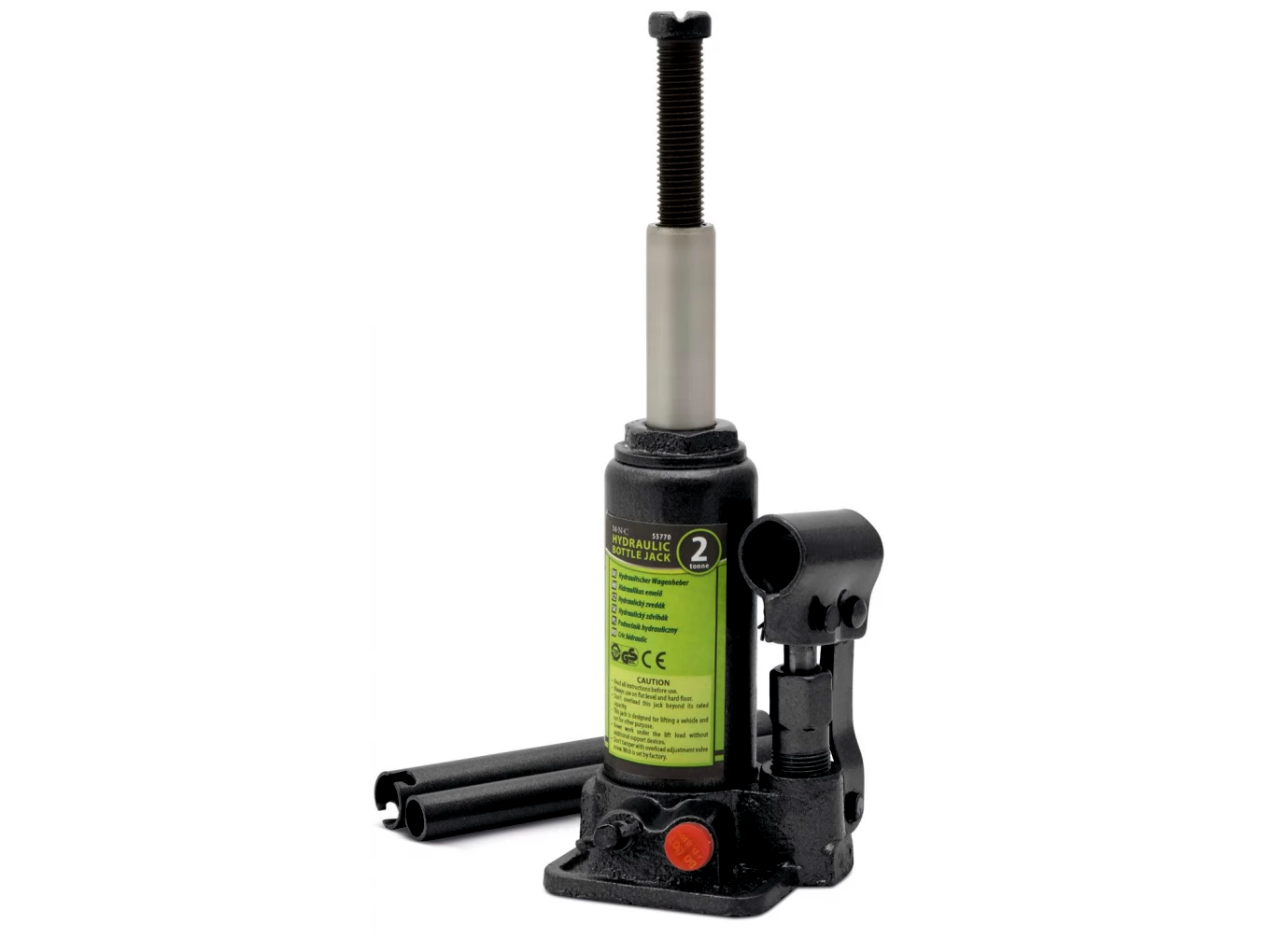 Hidraulikus palackos emelő, amely széles körben alkalmazható, akár otthoni vagy autós felhasználásra is. Használatával gyorsan és egyszerűen emelhet. Pl. autójánál csak helyezze egy megfelelő emelési ponthoz, tekerje ki ütközésig a felső részt és az összerakható kar segítségével kezdje meg az emelést. Előnye, hogy kis helyen is elfér, így bárhová magával viheti csomagtartójában. Emelés előtt mindig győződjön meg az emelt tárgy helyes rögzítéséről, a megfelelő emelési pont kiválasztásáról a balesetveszélyes helyzetek elkerülése érdekében!