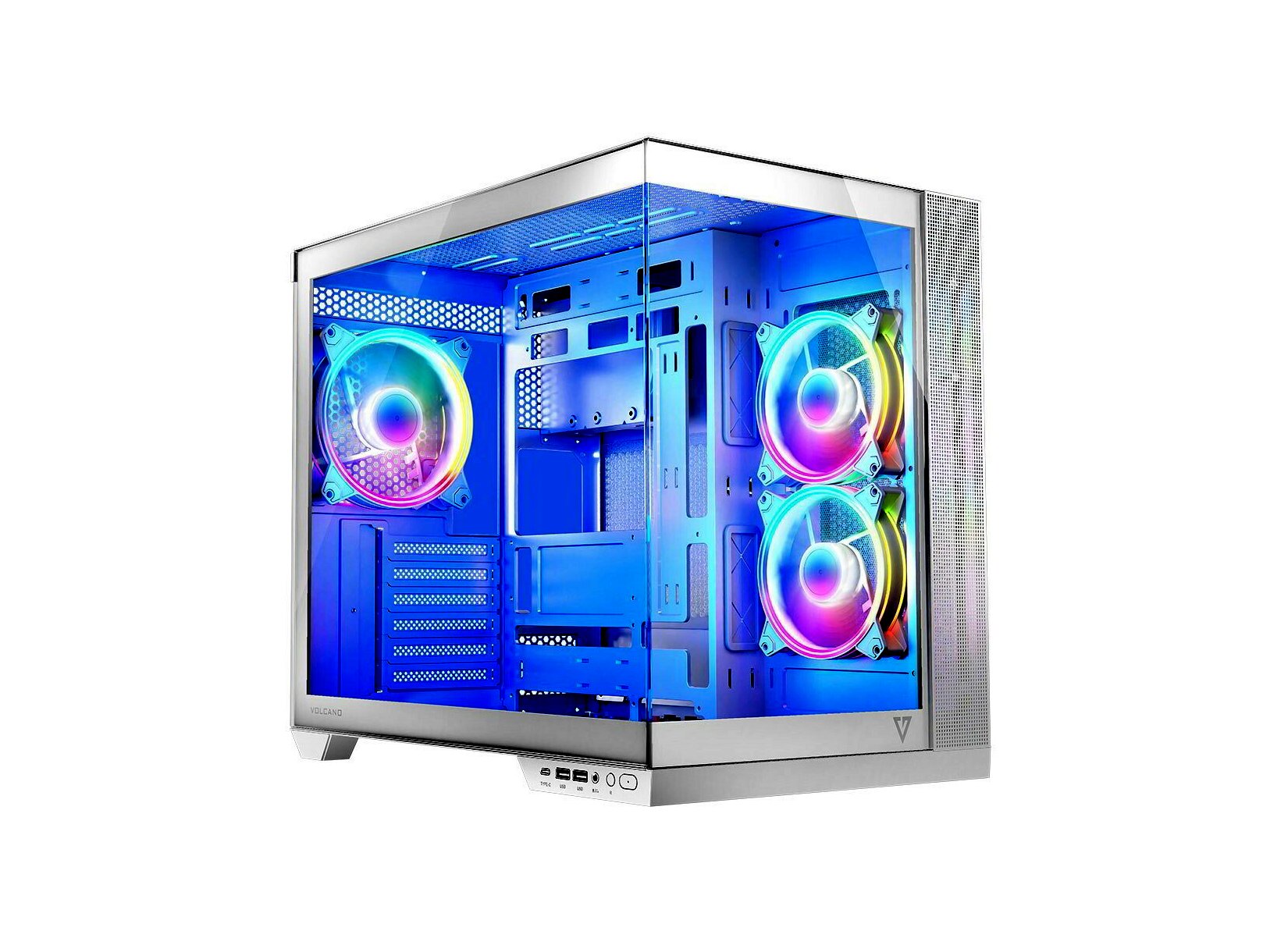 Ez a számítógépház a modern technológia és esztétika összhang nyújtja. A Modecom Volcano Panorama Apex 3F ARGB fehér számítógépház kifejezetten a legújabb trendek figyelembevételével lett tervezve, hogy minden alkatrész kiemelkedő látványt nyújtson. Nem csupán egy átlátszó oldalpanellel rendelkezik, hanem teljes betekintést biztosít a számítógép belsejébe, így minden gondosan kiválasztott komponens szépen megmutatható.