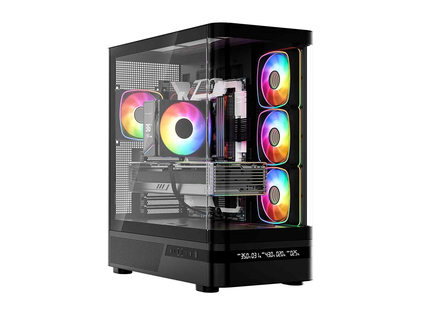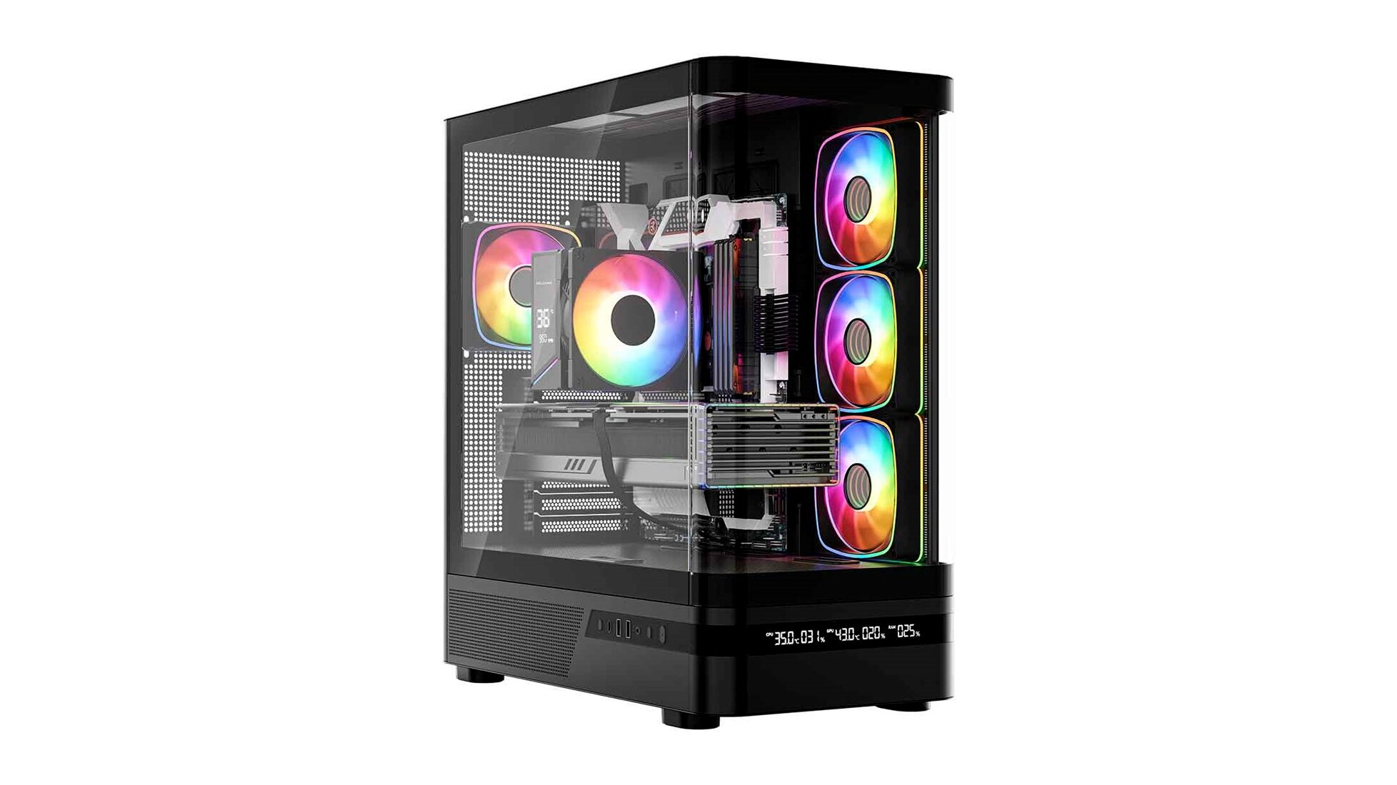 • Látványos gamer atmoszféra: az oldalsó ARGB ventilátorok és előlapi kijelző együtt egyedivé teszik a konfigurációt