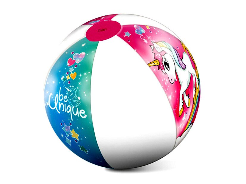Unikornis mintával díszített, 50 cm-es átmérőjű felfújható strandlabda. Ideális játék strandra, vízpartra, főleg a forró nyári napokon.