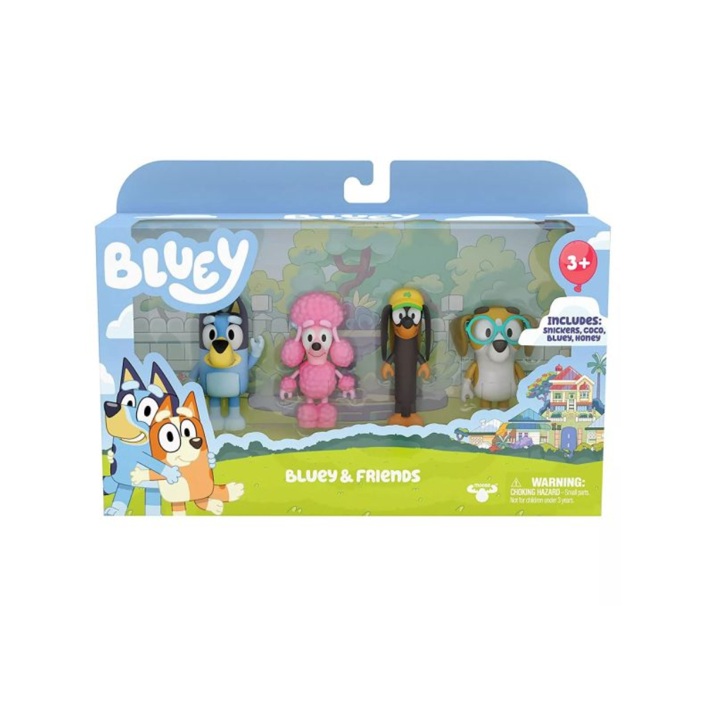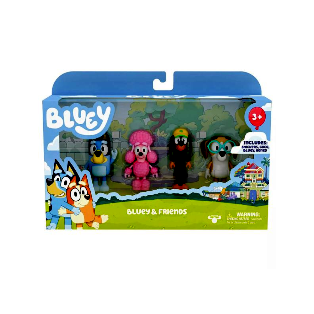 Fedezd fel a Bluey világát, és élvezd a közös játékot barátaival ebben a fantasztikus és izgalmas 4 darabos figuracsomagban!