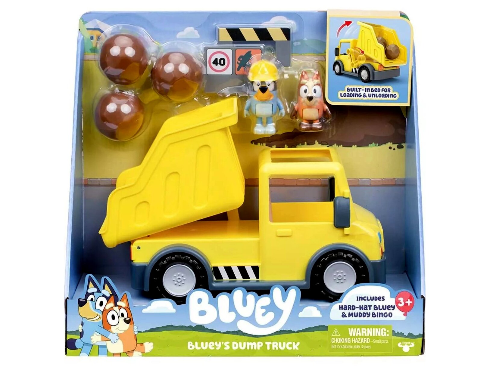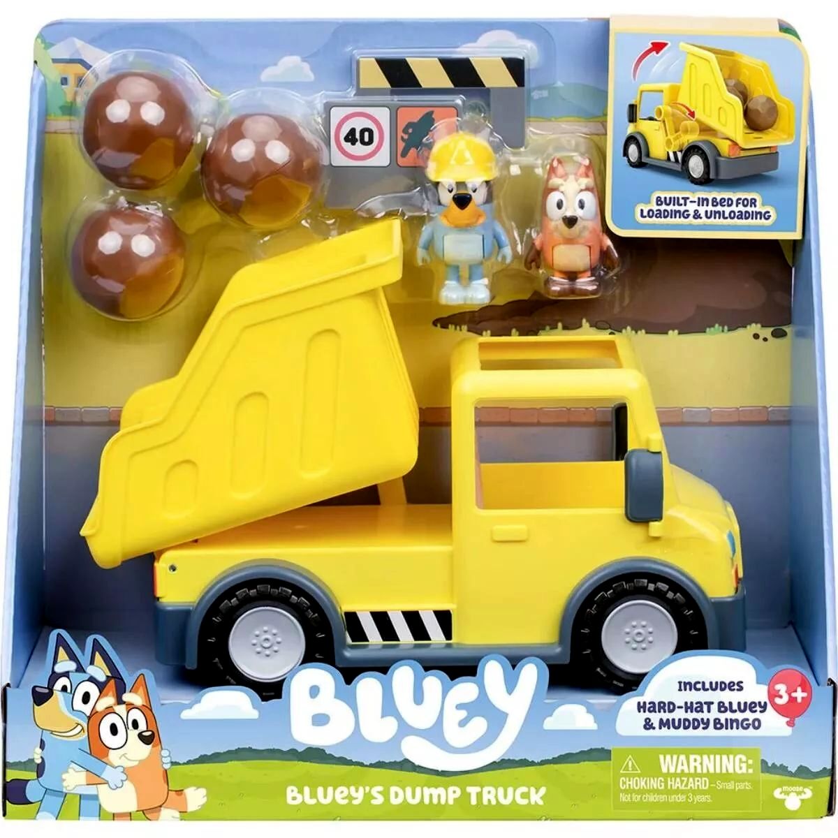 - Exkluzív figurák: Bluey és Bingó mozgatható figurák, melyek könnyedén beültethetők a teherautó fülkéjébe.