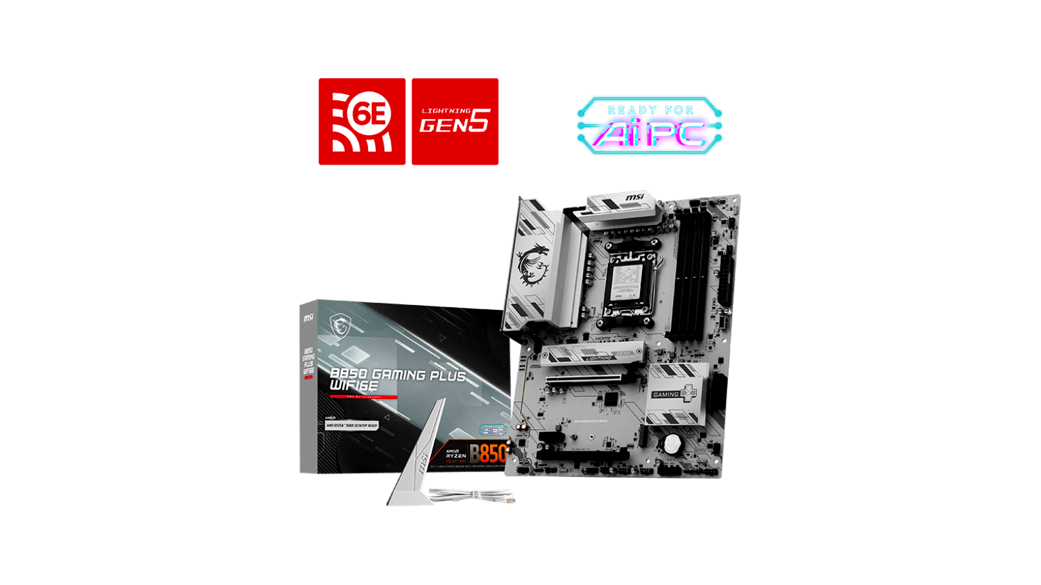 A B850 GAMING PLUS WIFI6E alaplapot a csúcskategóriás csatlakoztatás, sokoldalú eszközök és egy prémium Wi-Fi megoldás jellemzi, mely kifejezetten a gamerek számára készült, hogy teljeskörű élményt nyújtson. Modern WiFi 6E, 2.5G LAN, PCIe 5.0 M.2 megoldásokkal és egyedi EZ DIY funkciókkal felszerelve garantálja a 24/7 non-stop gaming élményt, optimalizálva az AMD Ryzen™ 9000 sorozatú processzorokhoz.