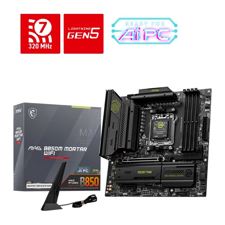 Az új B850M Mortar WiFi egy stabil, tartós és saját kezű építésre optimalizált alapot biztosít játékosok számára a PC építéseikhez. A legújabb Wi-Fi 7 megoldás, 5G LAN, USB 20 Gbps, PCIe 5.0, és exkluzív EZ DIY funkciók révén készen áll az AMD Ryzen™ 9000 szériás processzorok és egyéb fejlett technológiák kihívásaira.