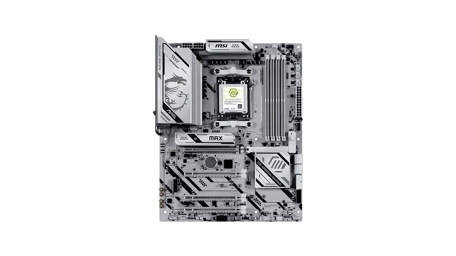 A DIMM foglalatok egyoldalas zárakkal rendelkeznek, ami megkönnyíti a beszerelést szűk házakban vagy nagyméretű processzorhűtők mellett. A tényleges kompatibilitás és sebesség a CPU‑tól és a memóriamoduloktól függ; tuninghoz, EXPO profilokhoz és specifikus modulokhoz érdemes az MSI memória kompatibilitási listáját (QVL) áttekinteni.