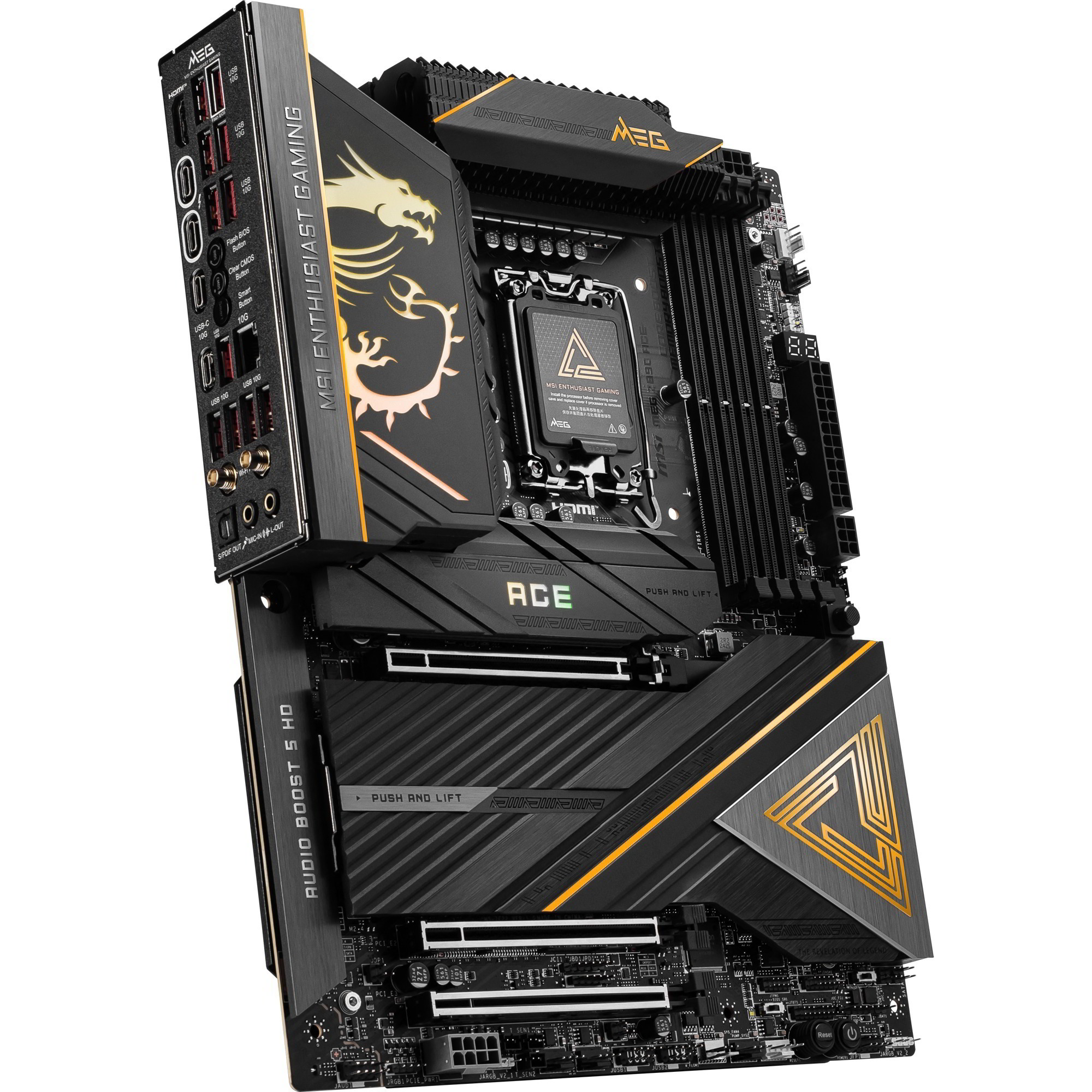 A MEG Z890 ACE alaplap kiváló választás azon PC-építők számára, akik nem érnek be kevesebbel, mint a legjobb. Az Intel új generációs processzoraival való kompatibilitása és az élethez szükséges fejlett funkciói révén bármely PC-t csúcsra emelheted ezzel az alaplappal.
