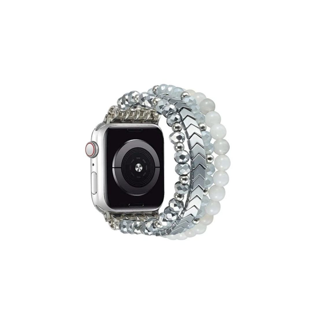 Stílus és Kényelem: Az óraszíj elegáns gyöngyös kialakítása és az ezüst szín nem csak egyedi megjelenést biztosít, hanem prémium érzetet is kölcsönöz az Apple Watch-odnak. Az okosóra nem csupán a technológia csodája lesz, hanem egy divatos kiegészítő is, amely minden alkalomhoz passzol.