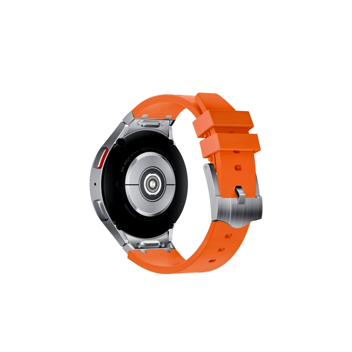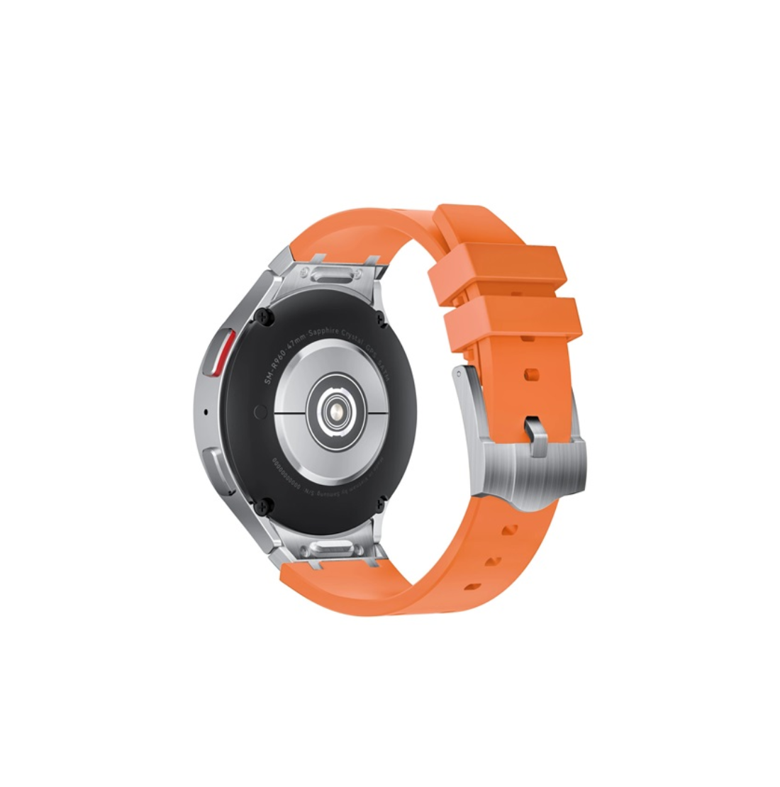Ez az óraszíj nemcsak funkcionalitása miatt kiemelkedő, hanem esztétikailag is vonzó. A narancs/ezüst színkombináció friss és modern megjelenést biztosít, ami bármely öltözékhez illeszkedik, legyen szó hétköznapi viseletről vagy elegáns alkalmakról.