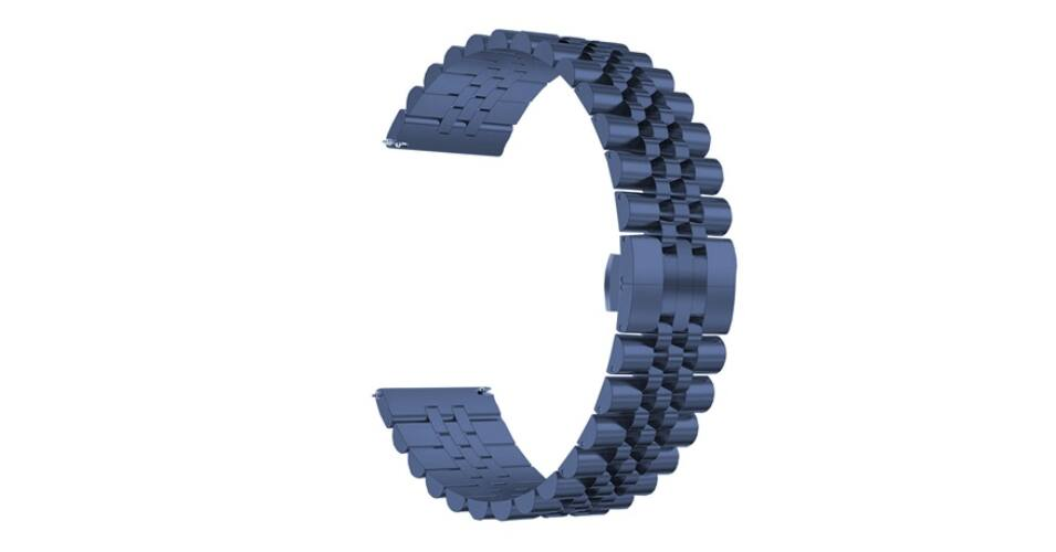 Elegáns fém szíj a különleges alkalmakra. Sajátossága a középen futó keskenyebb láncszemek, amelyek az óratestre irányítják a figyelmet.