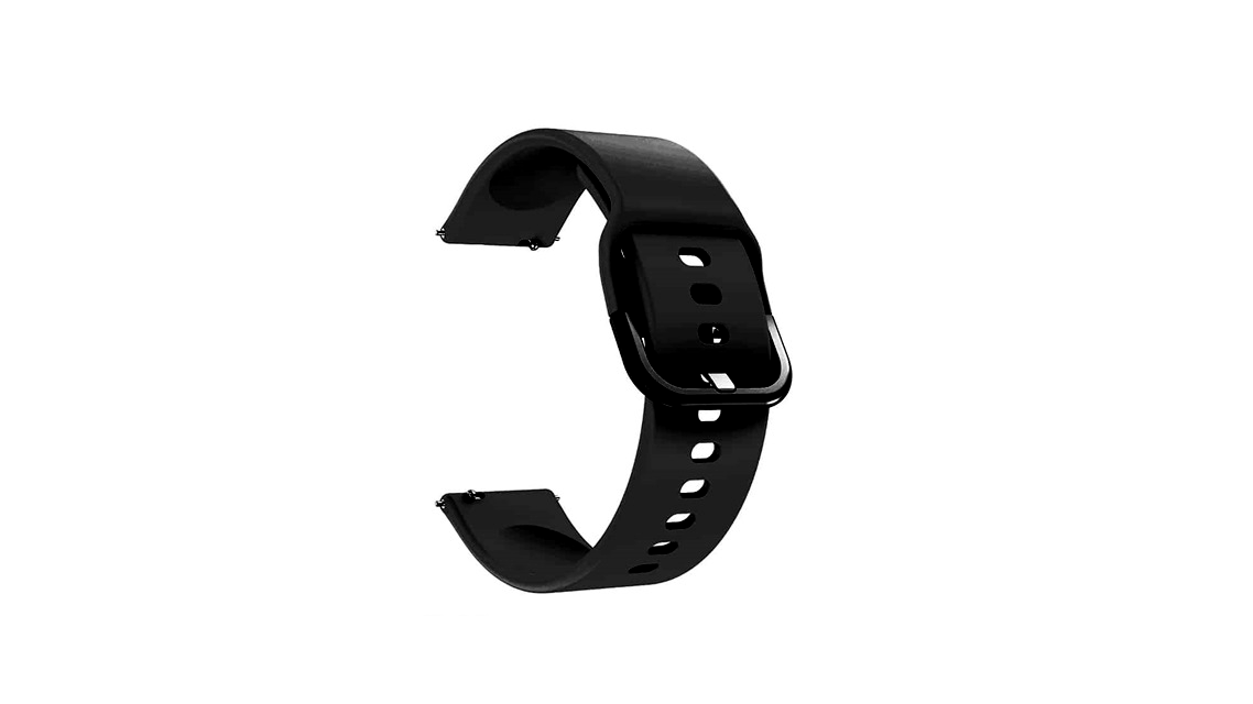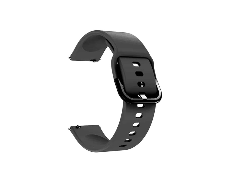 Kiváló minőségű sportos szilikon szíj lekerekített fém csattal és bújtatókkal.