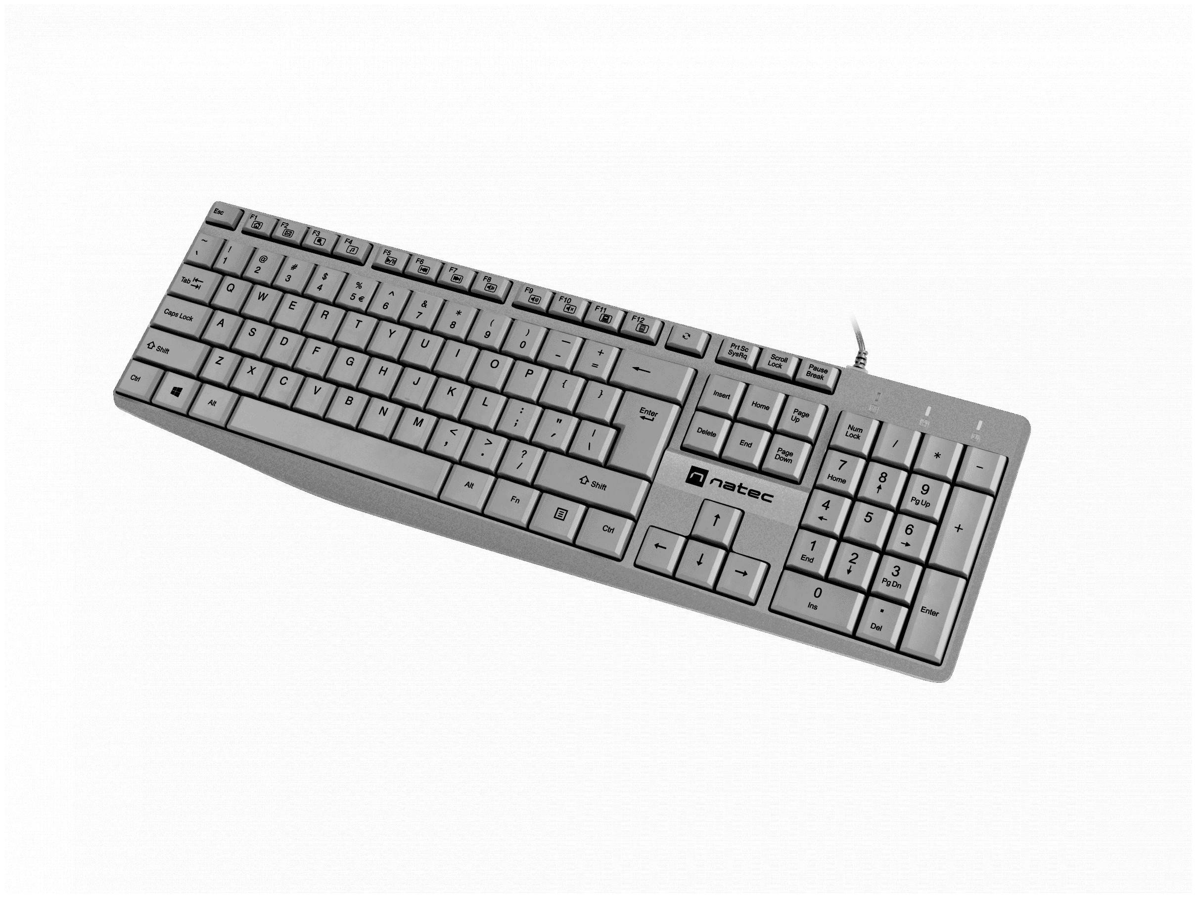 A Natec Nautilus billentyűzet a tartósság és a funkcionalitás kombinációja egy vékony tokba zárva. A billentyűzet billentyűit PU védőbevonat borítja, amely megakadályozza a feliratok lemosódását. A billentyűzet szerkezete ellenáll az elöntésnek, köszönhetően a folyadékot elvezető lyukaknak. 13 multimédiás billentyű megkönnyíti számos funkció használatát a számítógép működése során.
