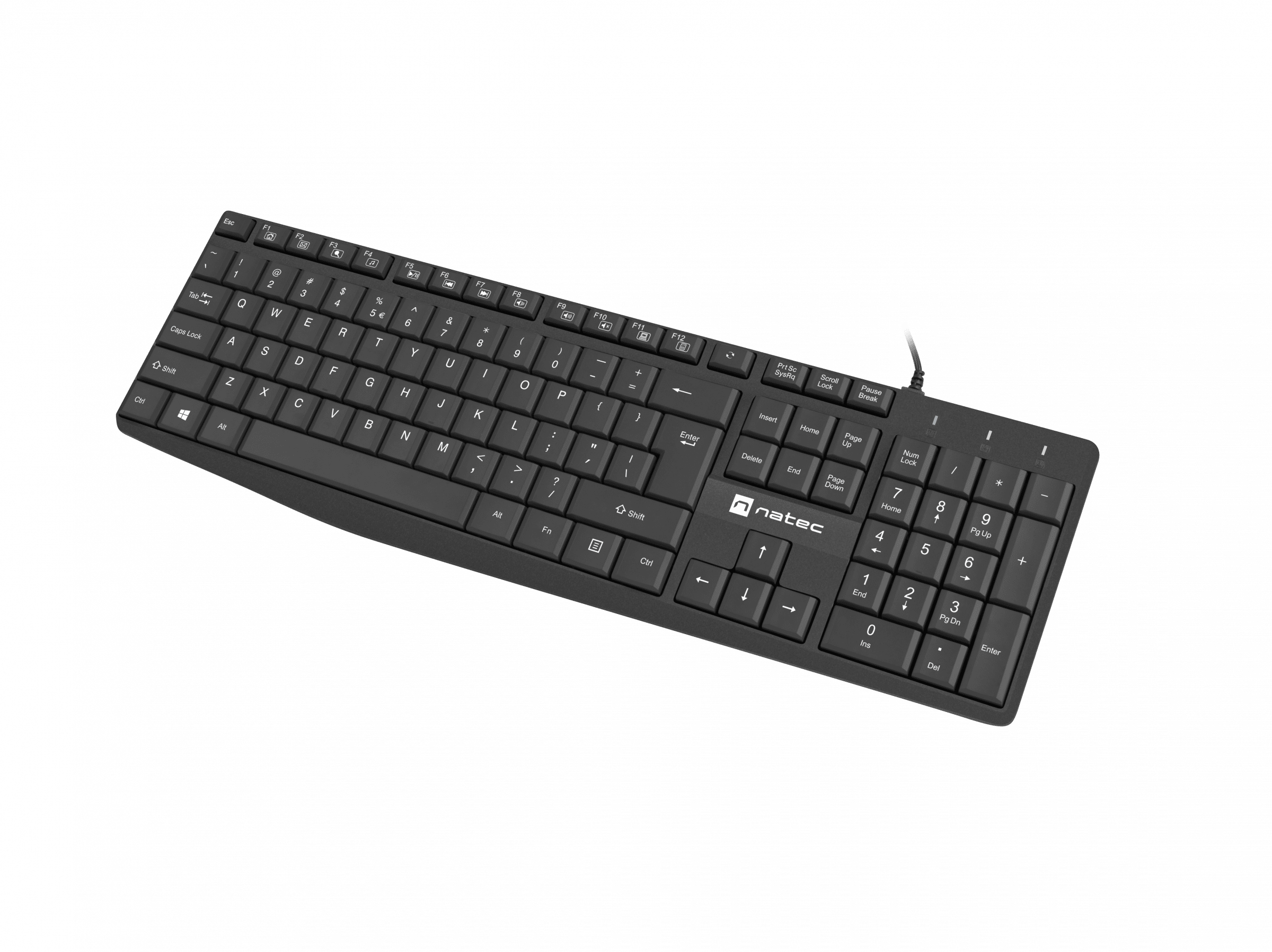 A Natec Nautilus billentyűzet a tartósság és a funkcionalitás kombinációja egy vékony tokba zárva. A billentyűzet billentyűit PU védőbevonat borítja, amely megakadályozza a feliratok lemosódását. A billentyűzet szerkezete ellenáll az elöntésnek, köszönhetően a folyadékot elvezető lyukaknak. 13 multimédiás billentyű megkönnyíti számos funkció használatát a számítógép működése során.