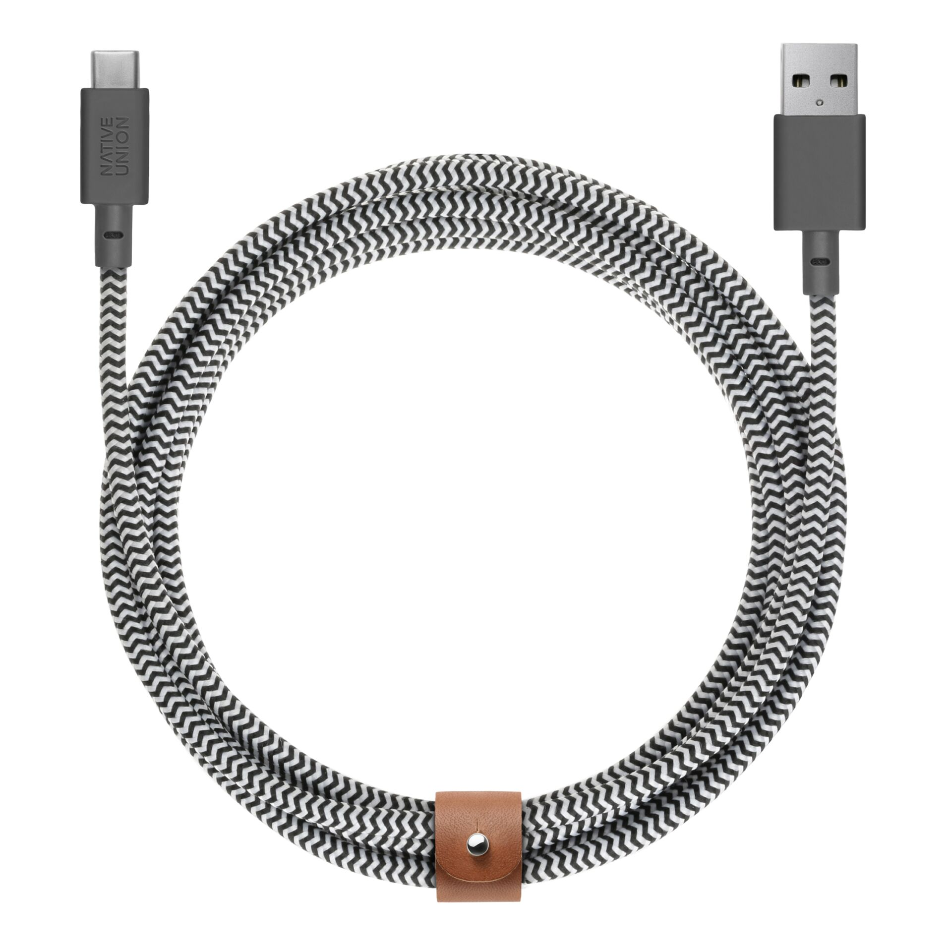 A bőr övpánt a kábel szerves része, így nem kell külön tépőzáras vagy műanyag kábelrendezőt keresni. Egyszerűen tekerd fel a vezetéket, húzd át rajta az övet, és máris kompakt, rendezett csomagot kapsz, amely táskában, hátizsákban vagy fiókban sem fog széttekeredni. Az öv a kábel bármely pontjára elcsúsztatható, így könnyedén az aktuális hosszhoz igazítható.