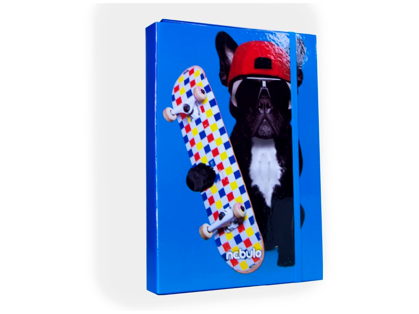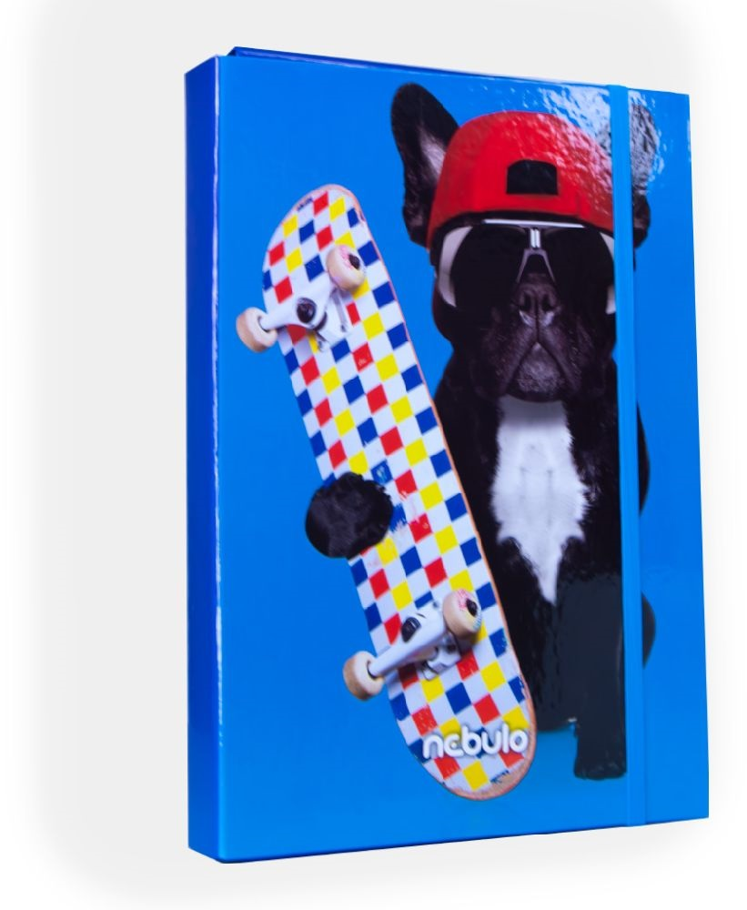 Legyen a tanulás igazán szórakoztató és rendezett a Nebuló deszkás bulldog mintás füzetbox segítségével!