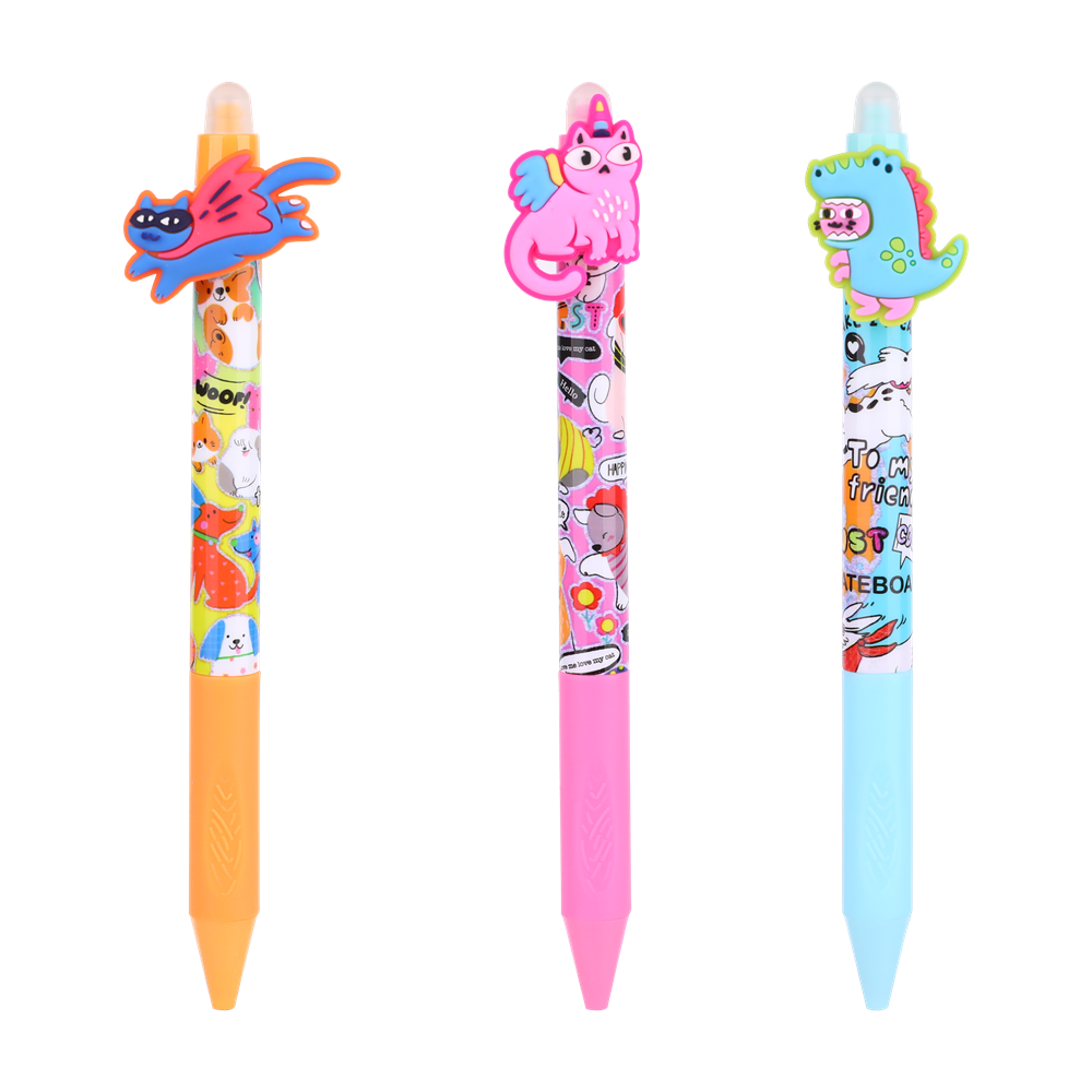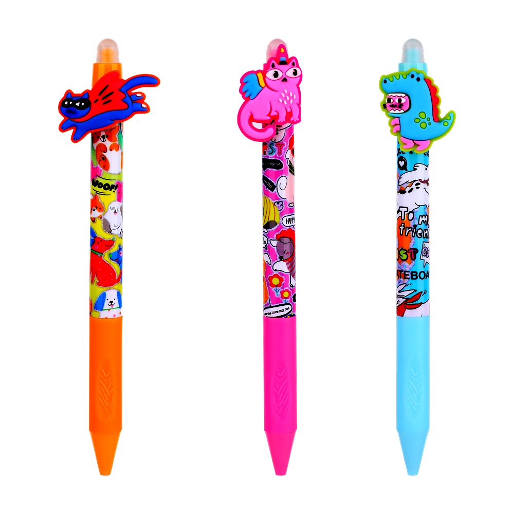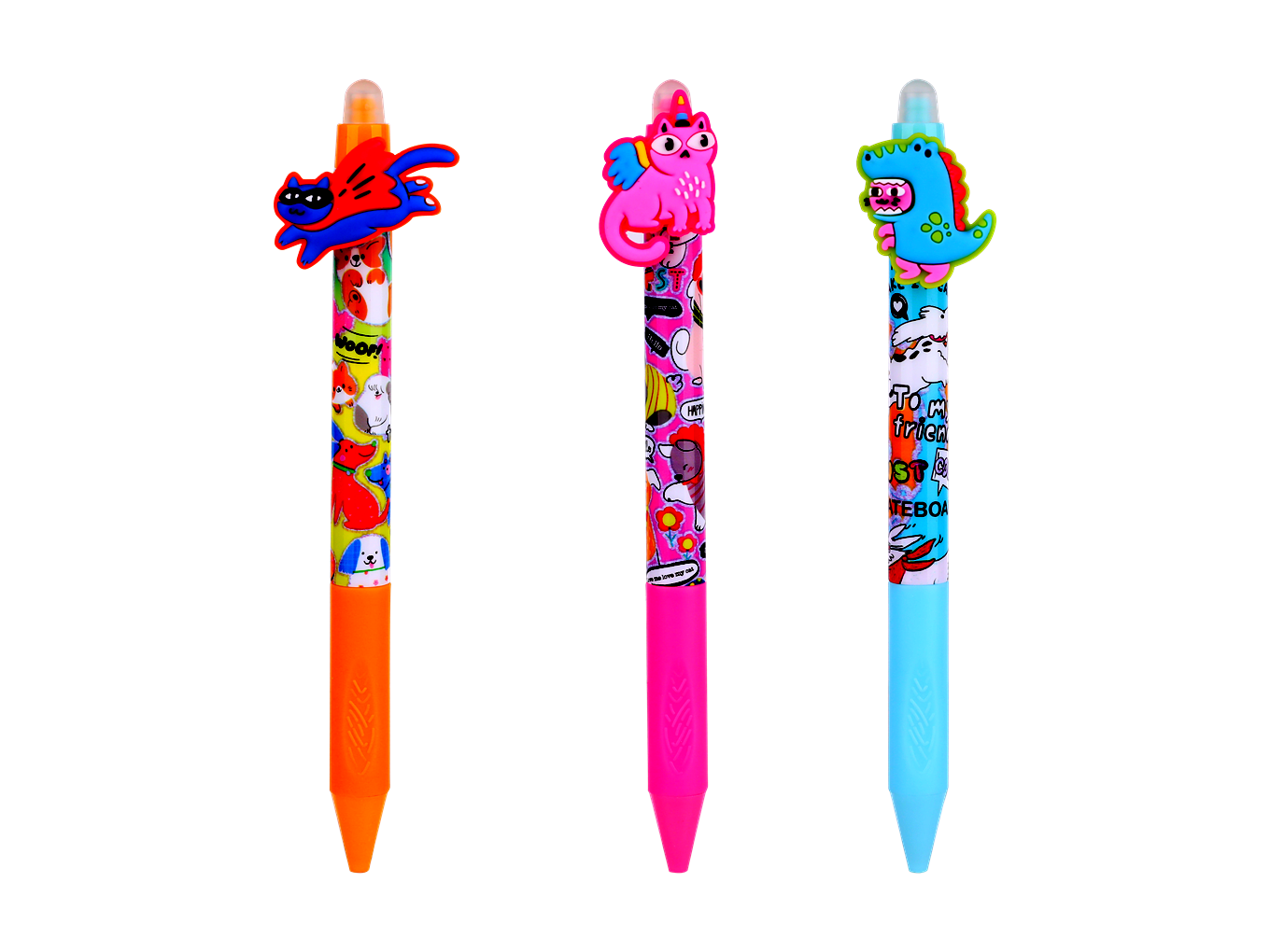 Radírozható nyomógombos zselés toll - Jelmezes macskák mintával
