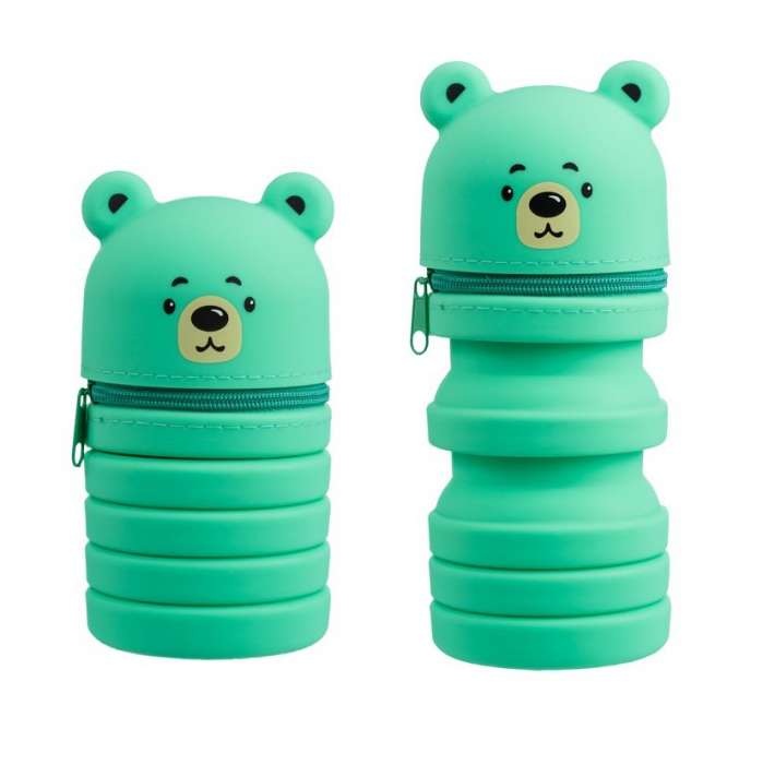 Harmonika tolltartó aranyos maci mintával, mely az asztalon nyitott állapotban tárolóként is működik. Minőségi puha és selymes tapintású szilikon alapanyaga könnyen tisztítható. Formájának köszönhetően remek játék és ajándék is egyben.