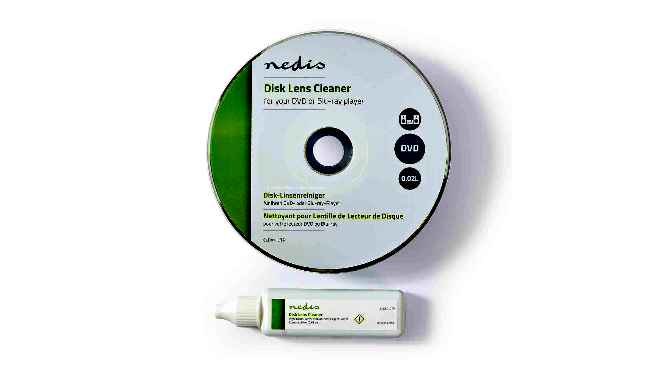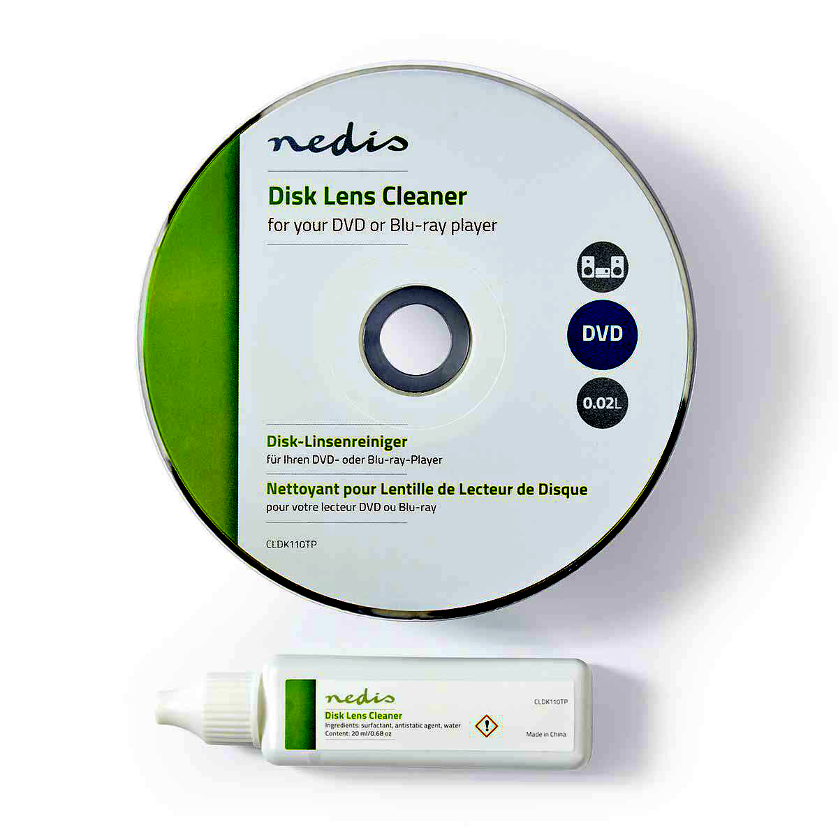 Lencsetisztító DVD, Blu-ray vagy CD ROM lejátszó lencséjének biztonságos és egyszerű tisztításához. A lejátszó lencséjének biztonságos és egyszerű tisztításához tegyen kis mennyiségű folyadékot DVD keféire, helyezze be a DVD-t és nyomja meg a lejátszás gombot. A képernyőn megjelenő menü további vizuális támogatás nyújt.