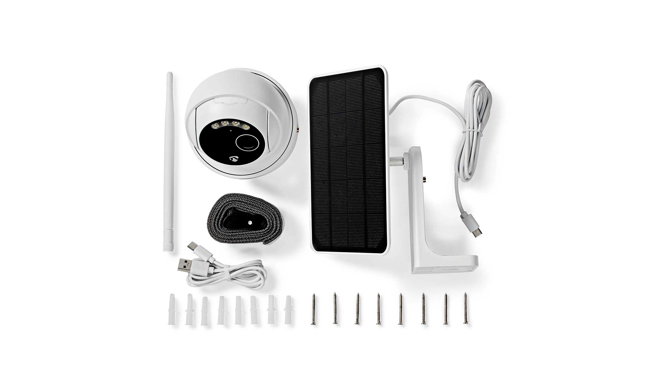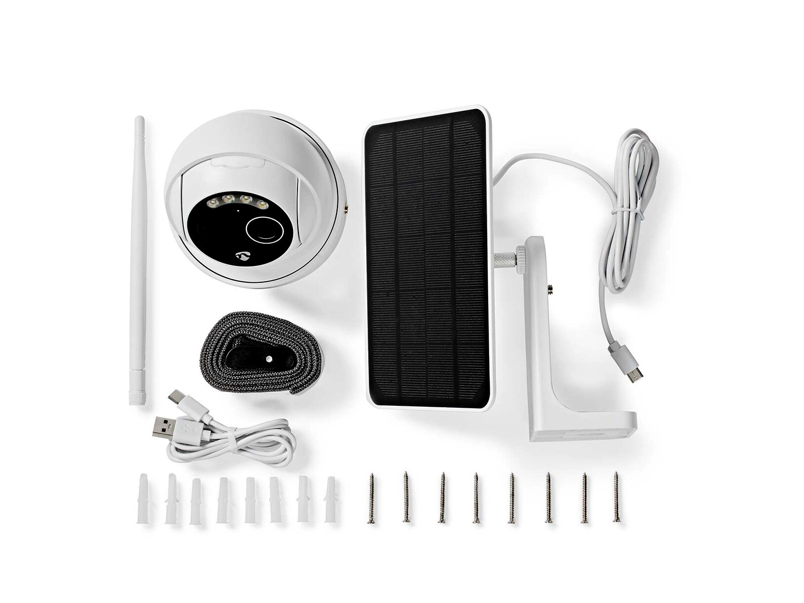 A Wi-Fi kamera átjáró nélkül telepíthető, és közvetlenül a vezeték nélküli hálózatba integrálható – ez leegyszerűsíti a telepítést és további költségeket takarít meg. Külső antennával van ellátva, amely a Wi-Fi jelet akár 70 méterre is javíthatja nyílt térben és akár 15 méterre a falon. A fényképezőgép újratölthető akkumulátorokon keresztül kapja az áramot, vagy a mellékelt napelemmel tölthető. Ezért akkor is beállíthatja a Wi-Fi kamerát, ha nincs hálózati aljzat a közelben. A fali, mennyezeti kameratartó a kamera elhelyezéséhez a ház falához tartozik, de egy heveder is, amellyel például a kamerát egy fához rögzítheti.