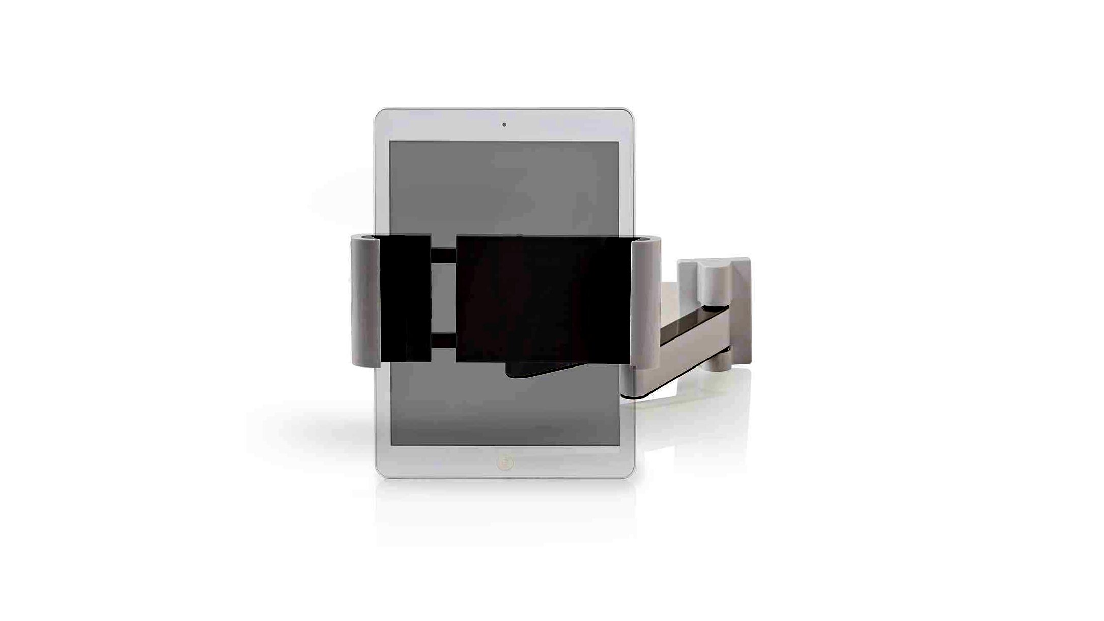 Rögzítse egy falra vagy a szekrény alá a konzolt, hogy otthonában bárhol minden irányban mozgatható tablet állványt hozzon létre, mely tetszés szerint dönthető, forgatható és elfordítható. A gyors és könnyű felszerelés érdekében az állvány az összes szükséges szerelési anyaggal el van látva, és automatikusan működő bilincs található rajta.