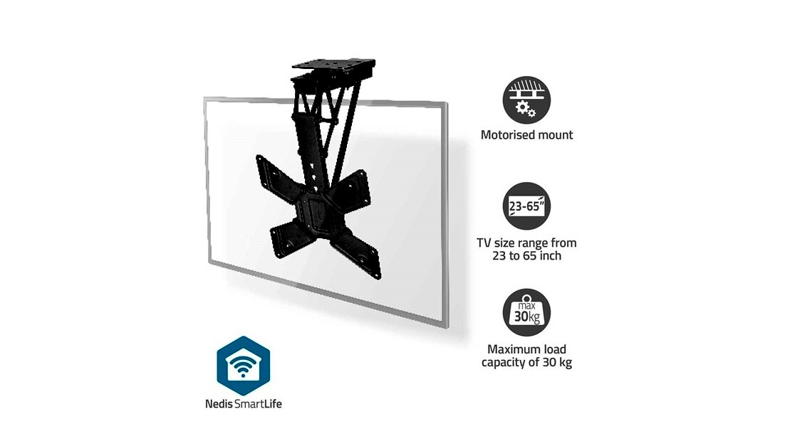 Fedezze fel a Nedis Smart Wi-Fi motoros lehajtható mennyezeti tartó kínálta új szintű kényelmet és technológiai fejlettséget, amely biztosítja a tökéletes televíziós élményt. Kompatibilis a 23" és 65" közötti készülékekkel, és akár 30 kg maximális terhelhetőséggel. A tartó egy innovatív lehajtható kialakítást kínál, amely lehetővé teszi az egyszerű tárolást és értékes helyet szabadít fel a lakásban.